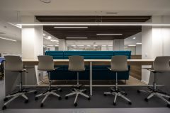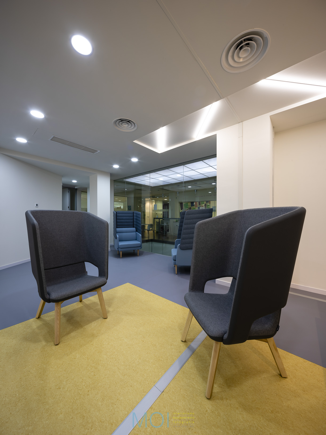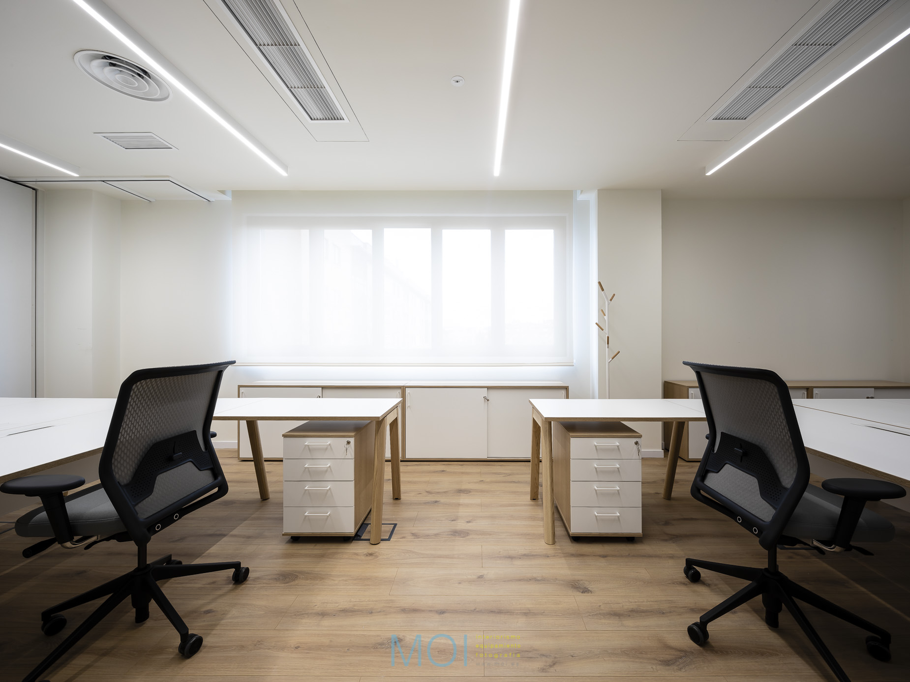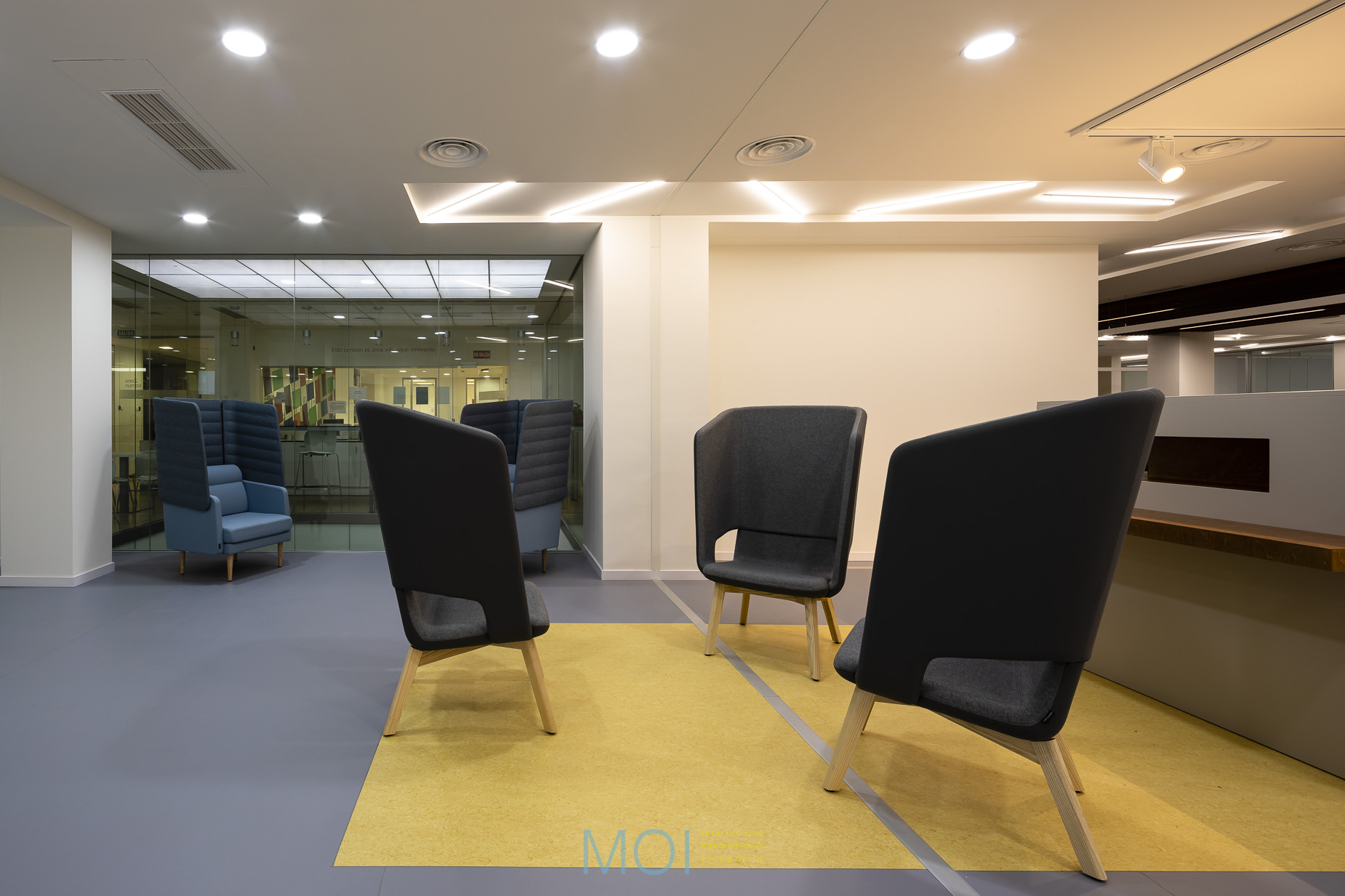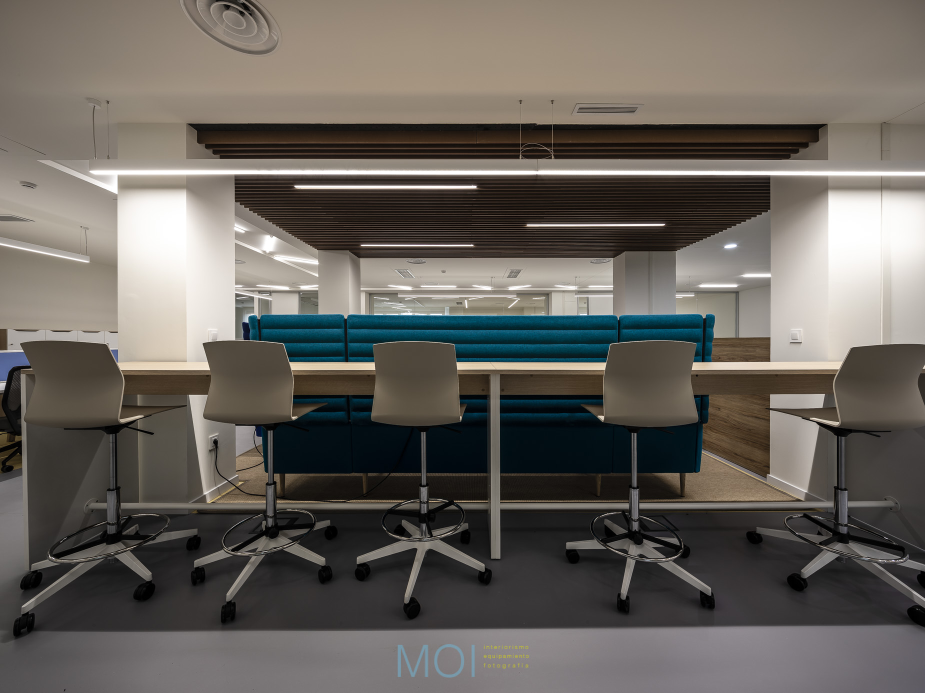 Toda la sillería empleada es de muy alta calidad y ergonomía, tanto las sillas multifunción, las confidentes, los taburetes y las sillas ergonómicas operativas. La base de nuestra propuesta fue apostar por un mobiliario de muy altas prestaciones, diseño atemporal que aguantase el paso del tiempo y que fomentase un ambiente de trabajo productivo y agradable. Una selección muy cuidada de producto, una elección de colores y acabados muy trabajada y un cliente que valoró todas estas cuestiones hicieron posible esta intervención.