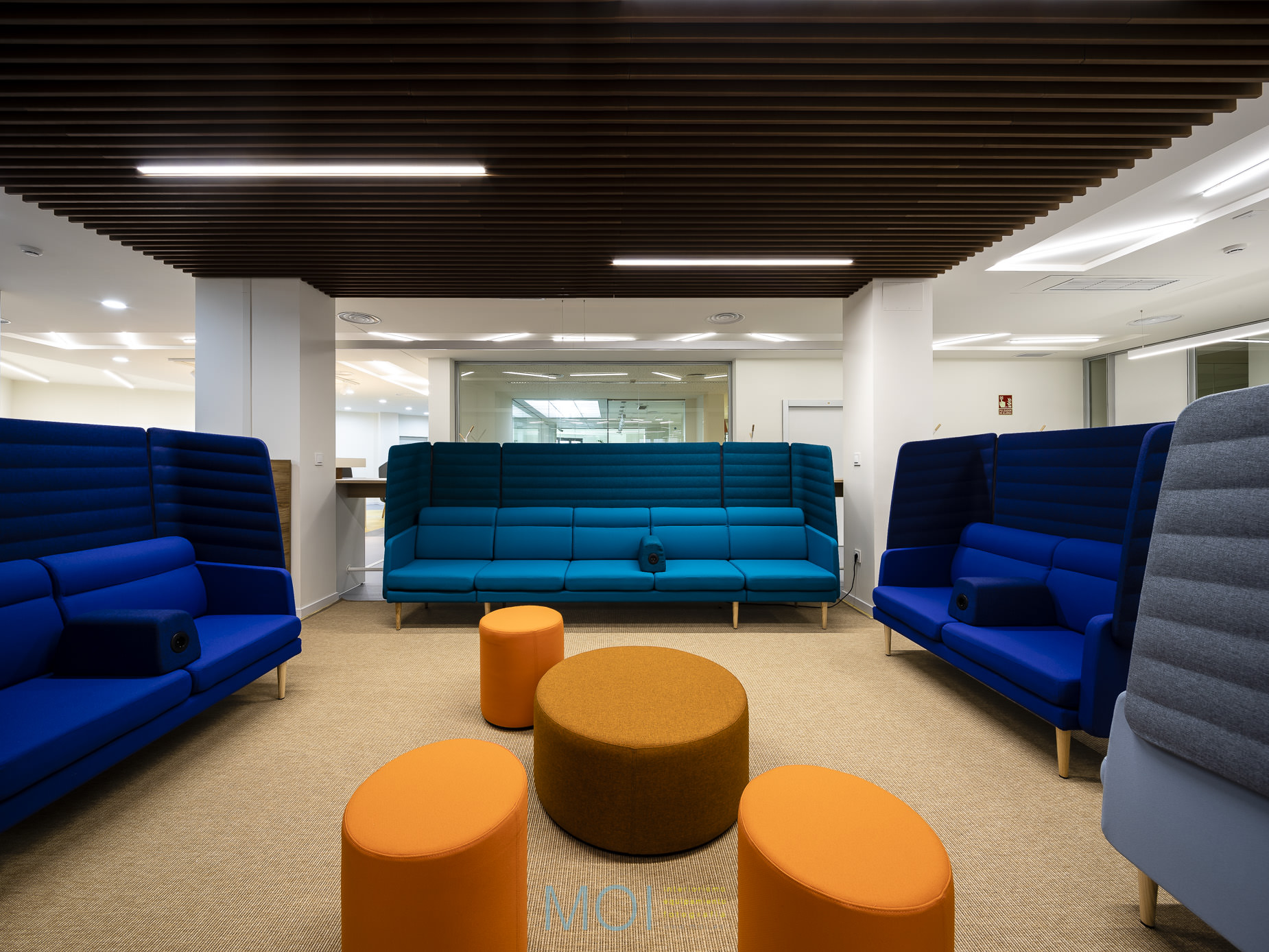 Con el uso de este tipo de soluciones tapizadas se generan varias zonas donde estar más concentrado o donde poder charlar sin molestar al resto de usuarios.