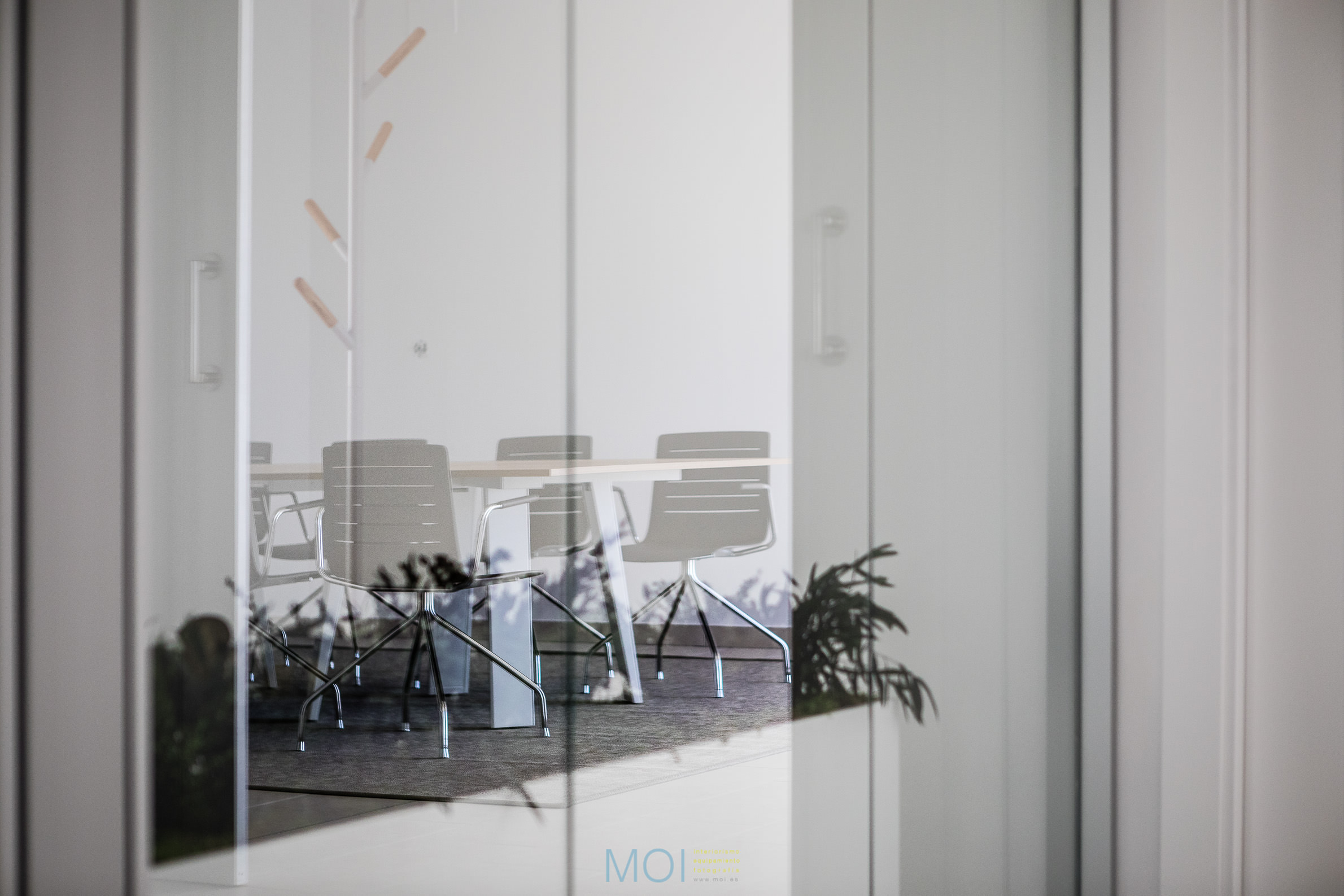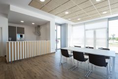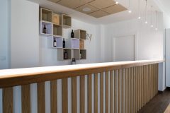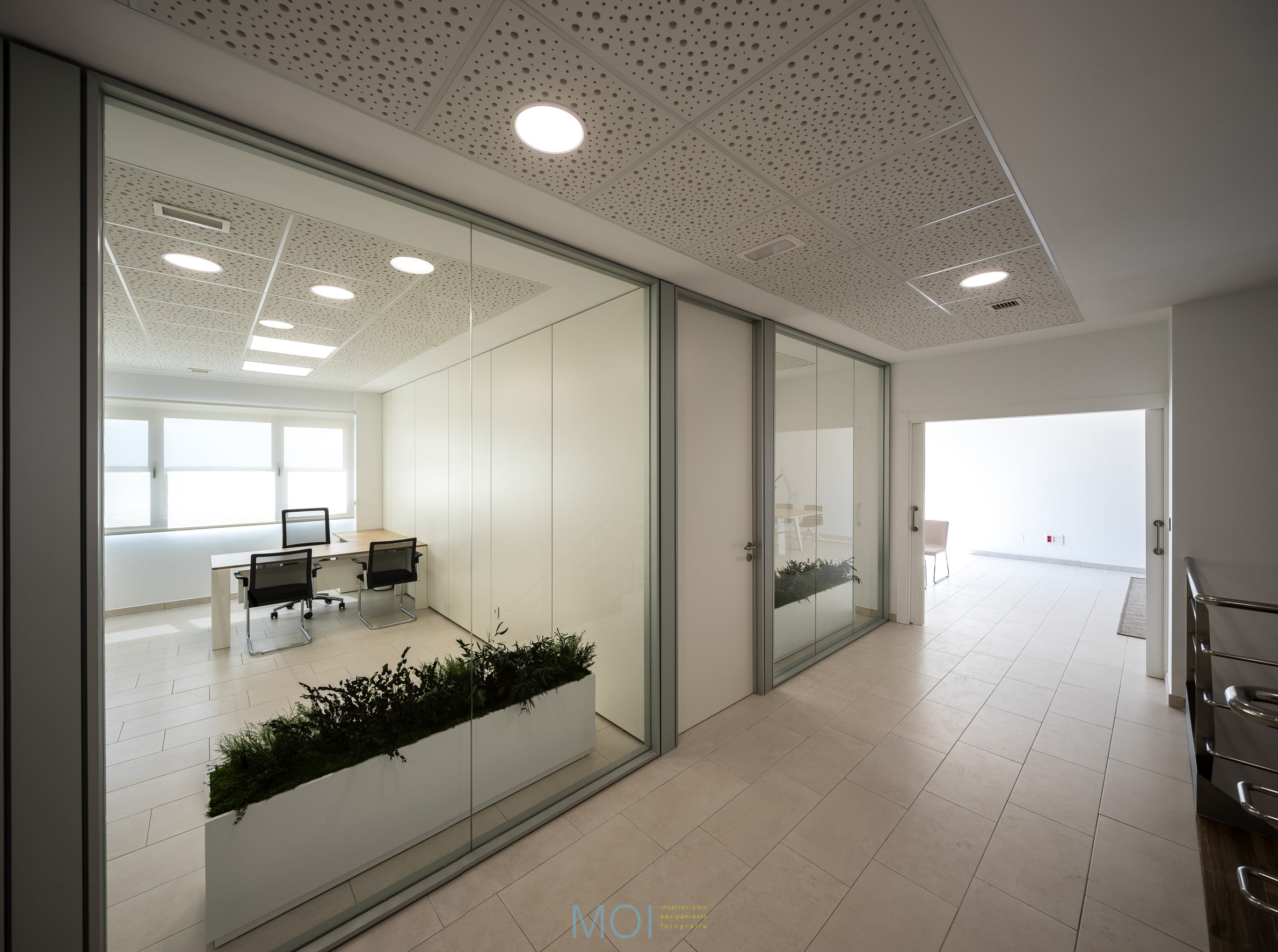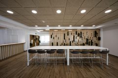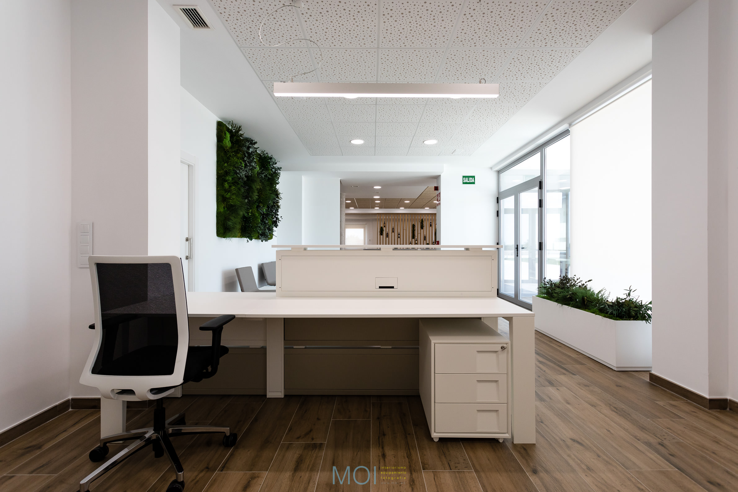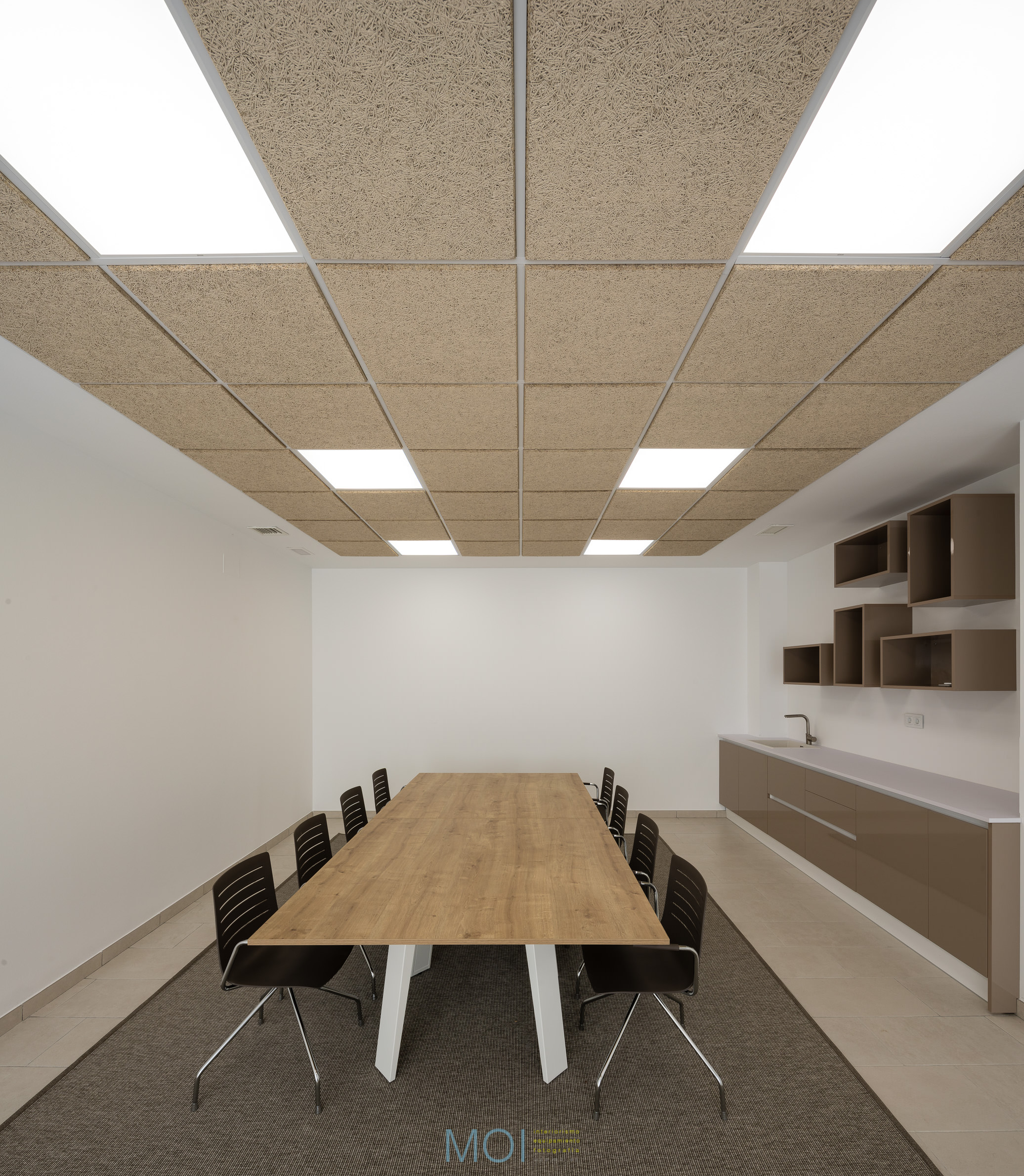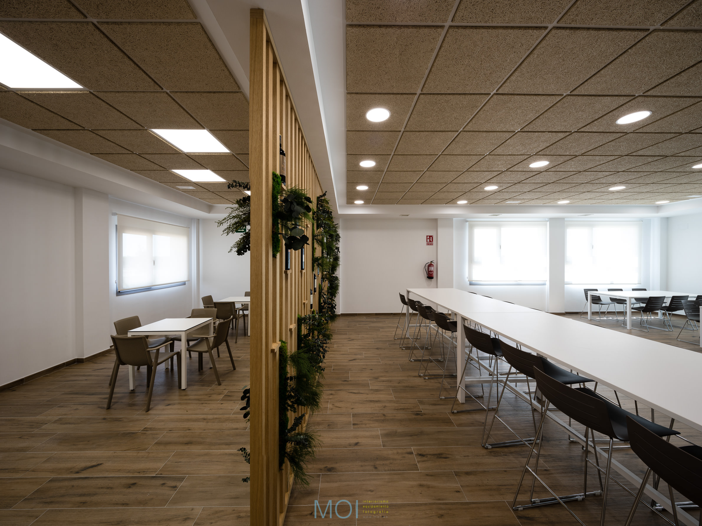 En Briego, MOI se ha ocupado del equipamiento integral del edificio: Mobiliario de oficina, mostradores, salas de catas, zonas de descanso, laboratorio, cocinas, comedores, mobiliario a medida, iluminación decorativa, complementos, jardines verticales, ebanistería, sistemas de oscurecimiento y control solar, alfombras… hasta los vinilos y el imponente logo de 20 metros de fachada.