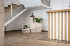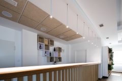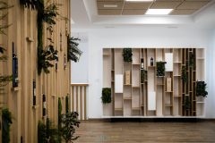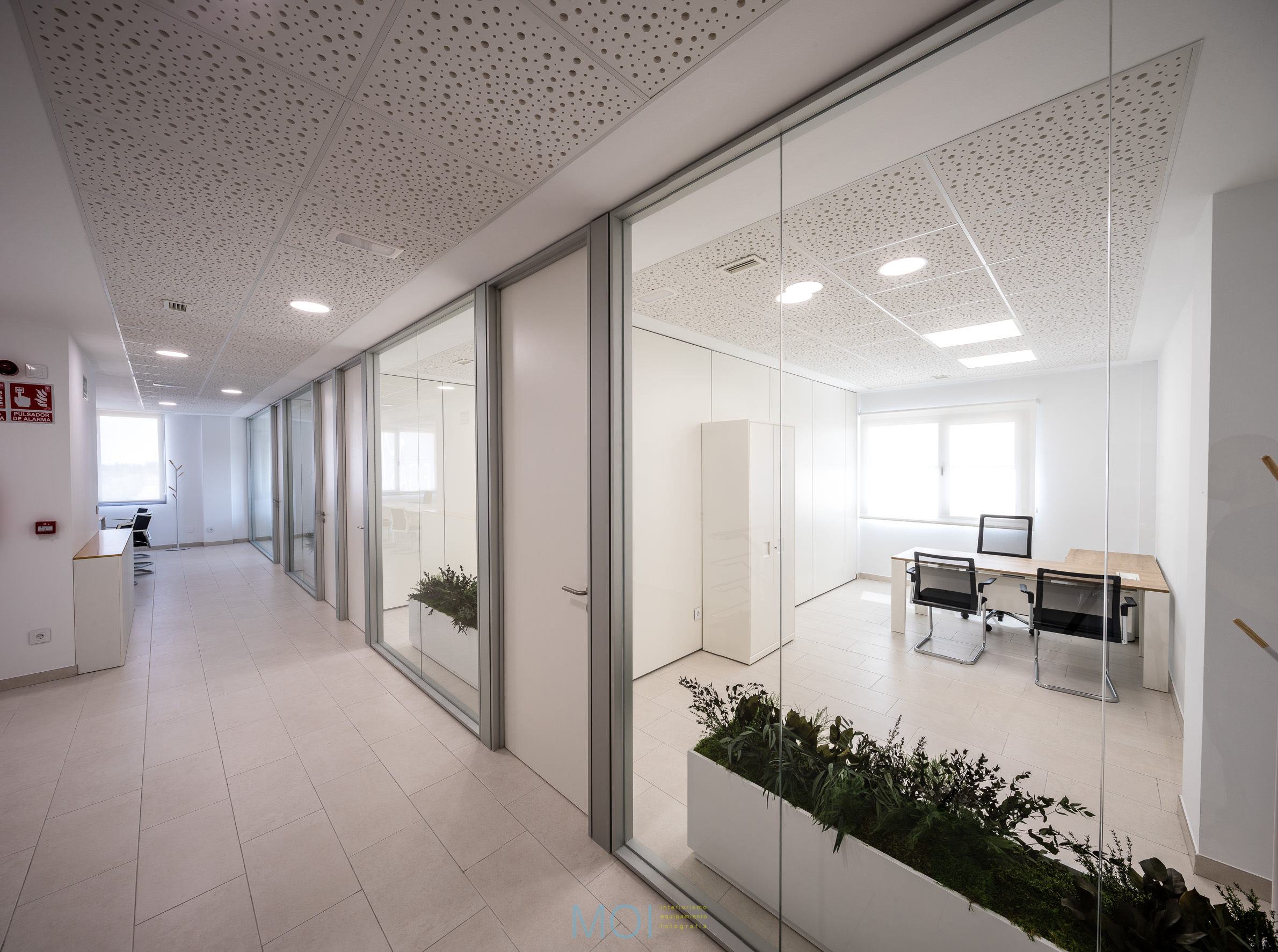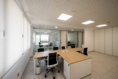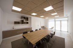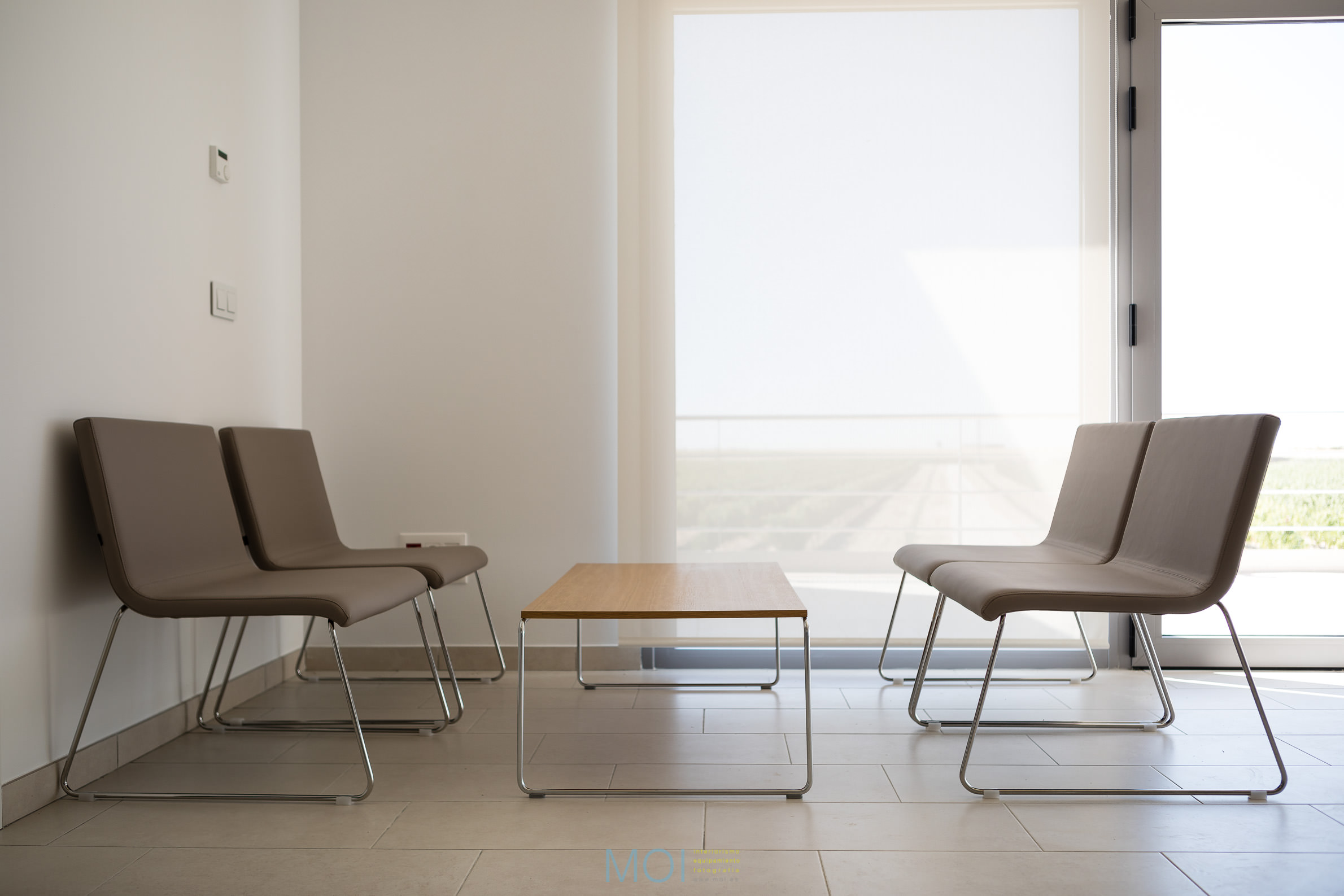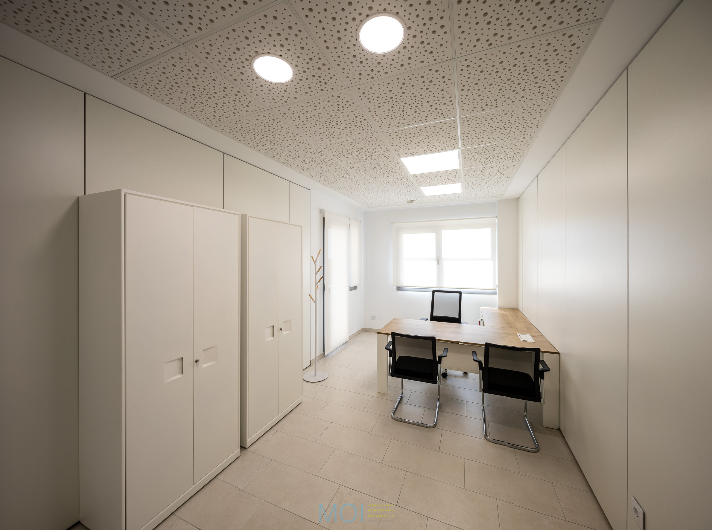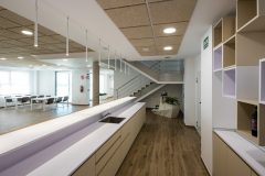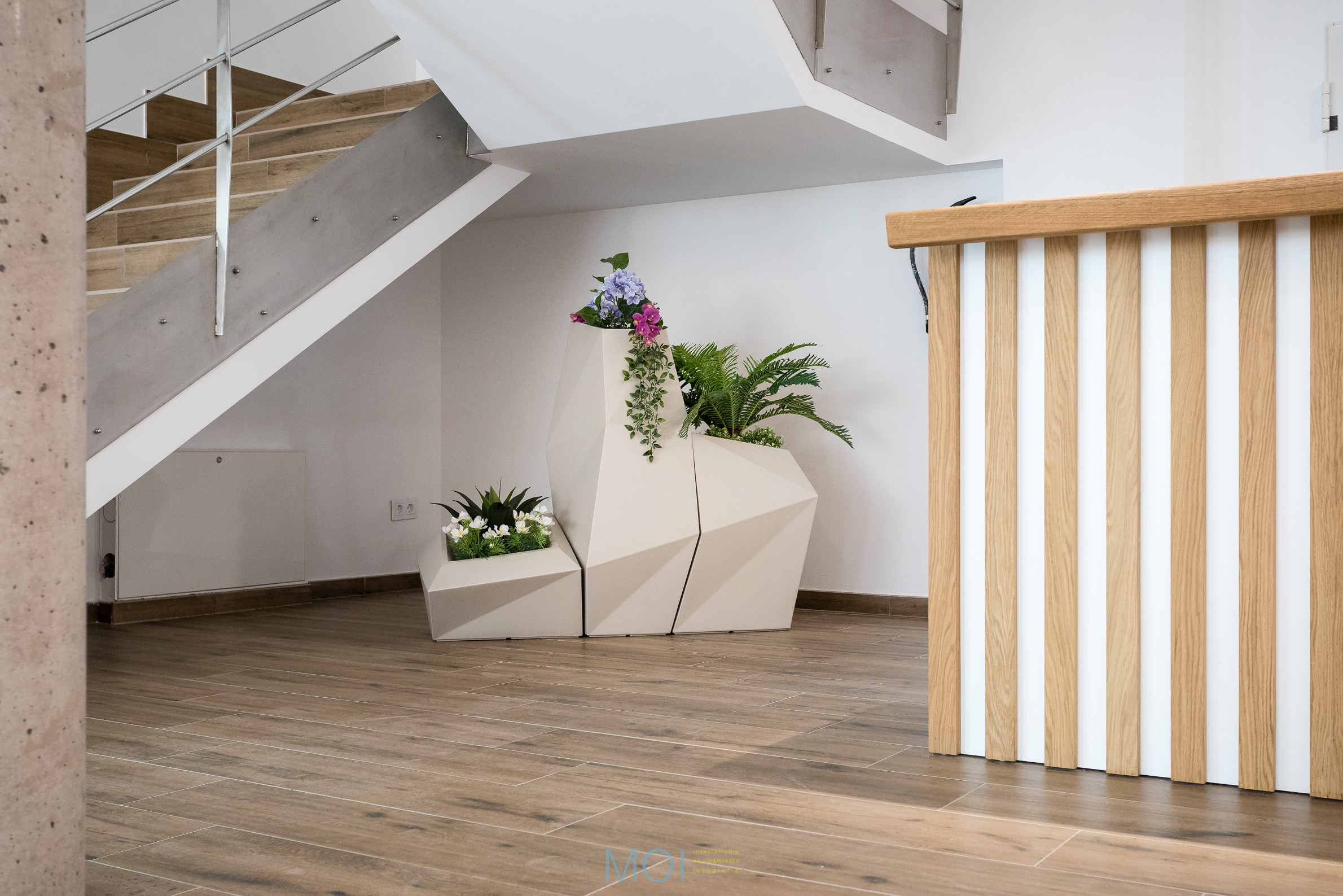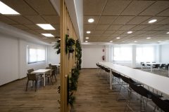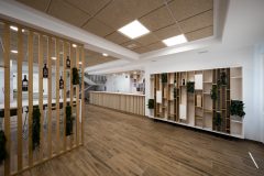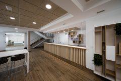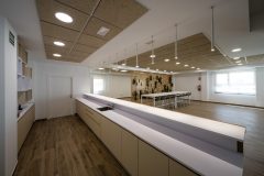 En Briego, MOI se ha ocupado del equipamiento integral del edificio: Mobiliario de oficina, mostradores, salas de catas, zonas de descanso, laboratorio, cocinas, comedores, mobiliario a medida, iluminación decorativa, complementos, jardines verticales, ebanistería, sistemas de oscurecimiento y control solar, alfombras… hasta los vinilos y el imponente logo de 20 metros de fachada.