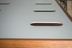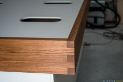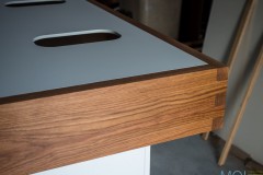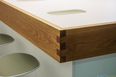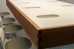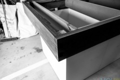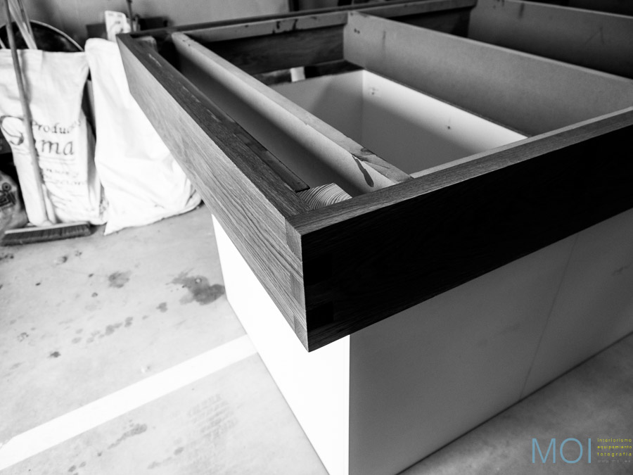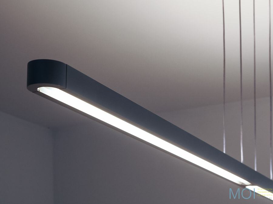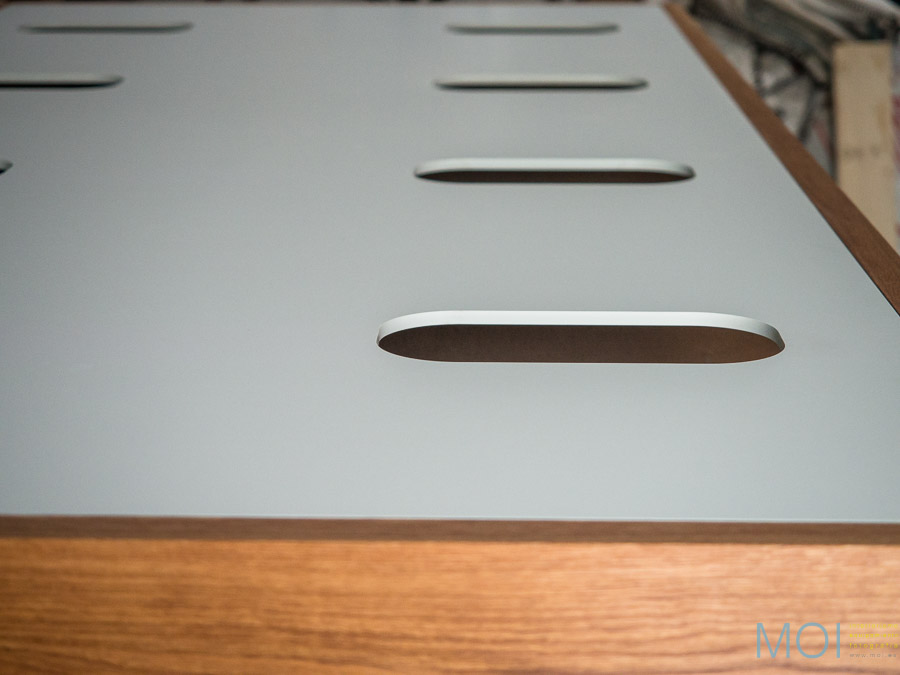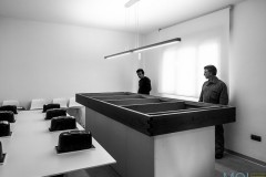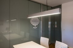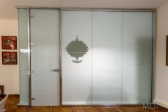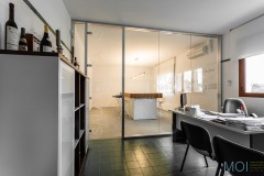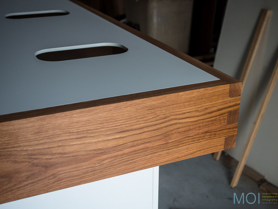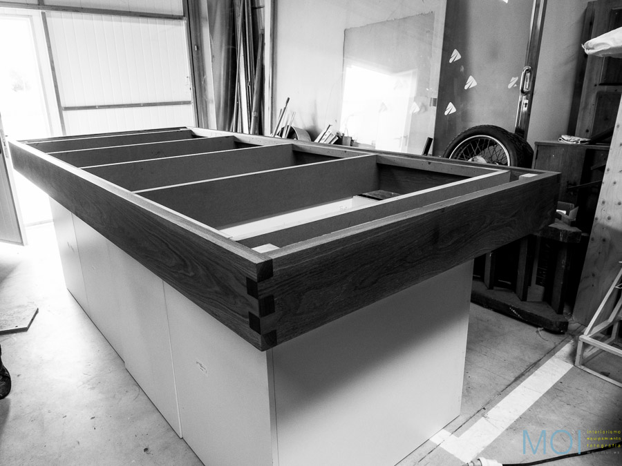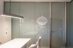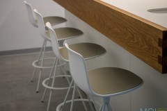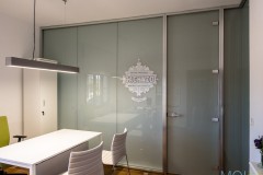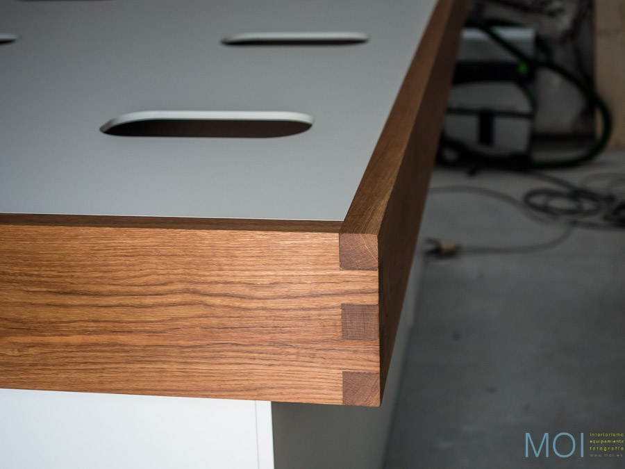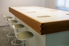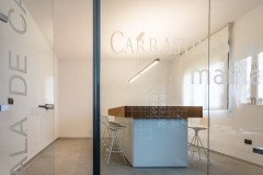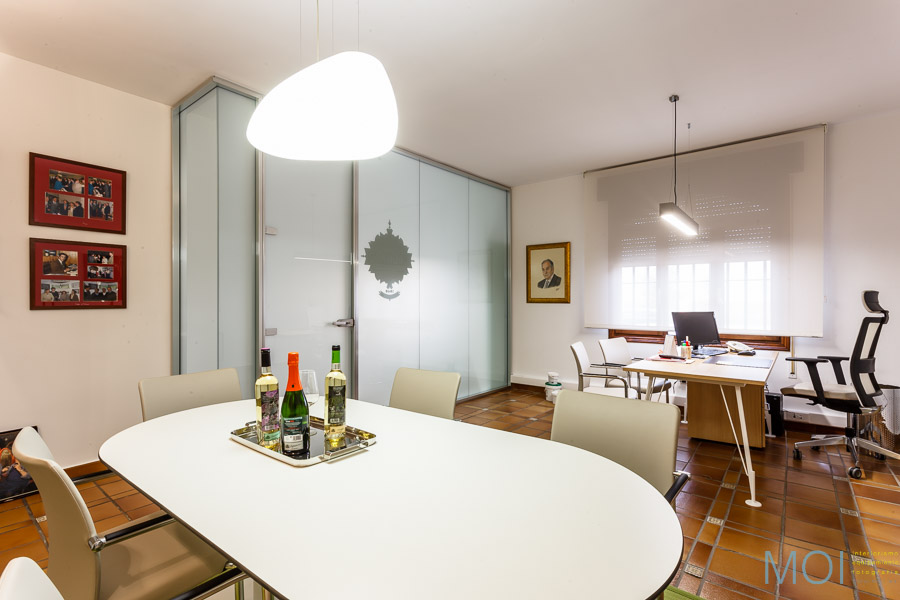 MOI ha contribuído con mamparas, iluminación, vinilos, cortinas y mobiliario, entre el que destaca la mesa de catas diseñada y fabricada en exclusiva para esta bodega.