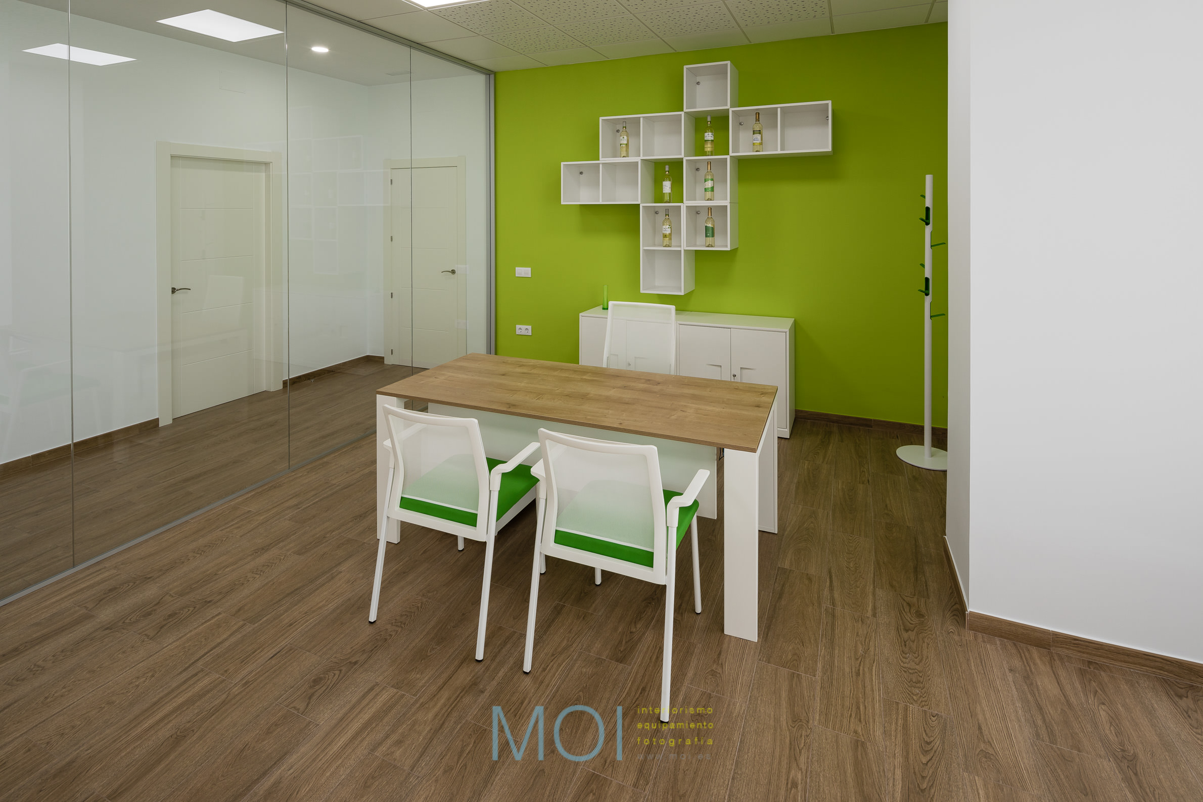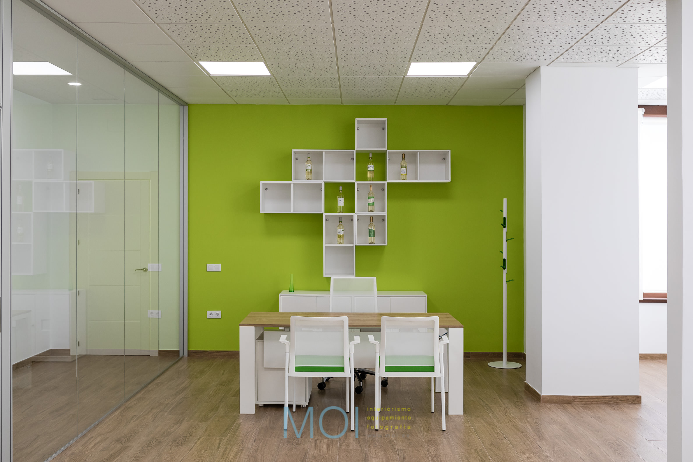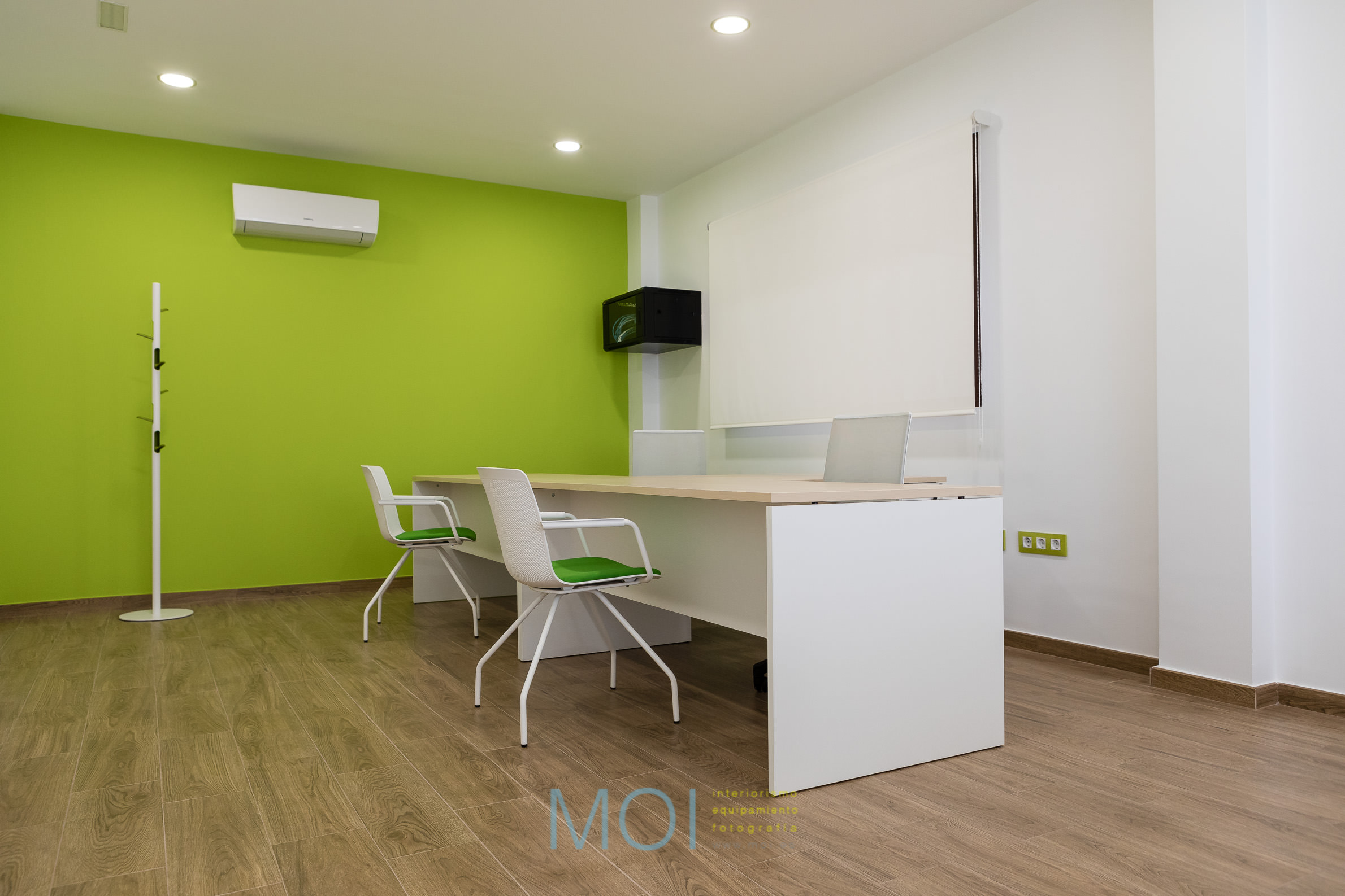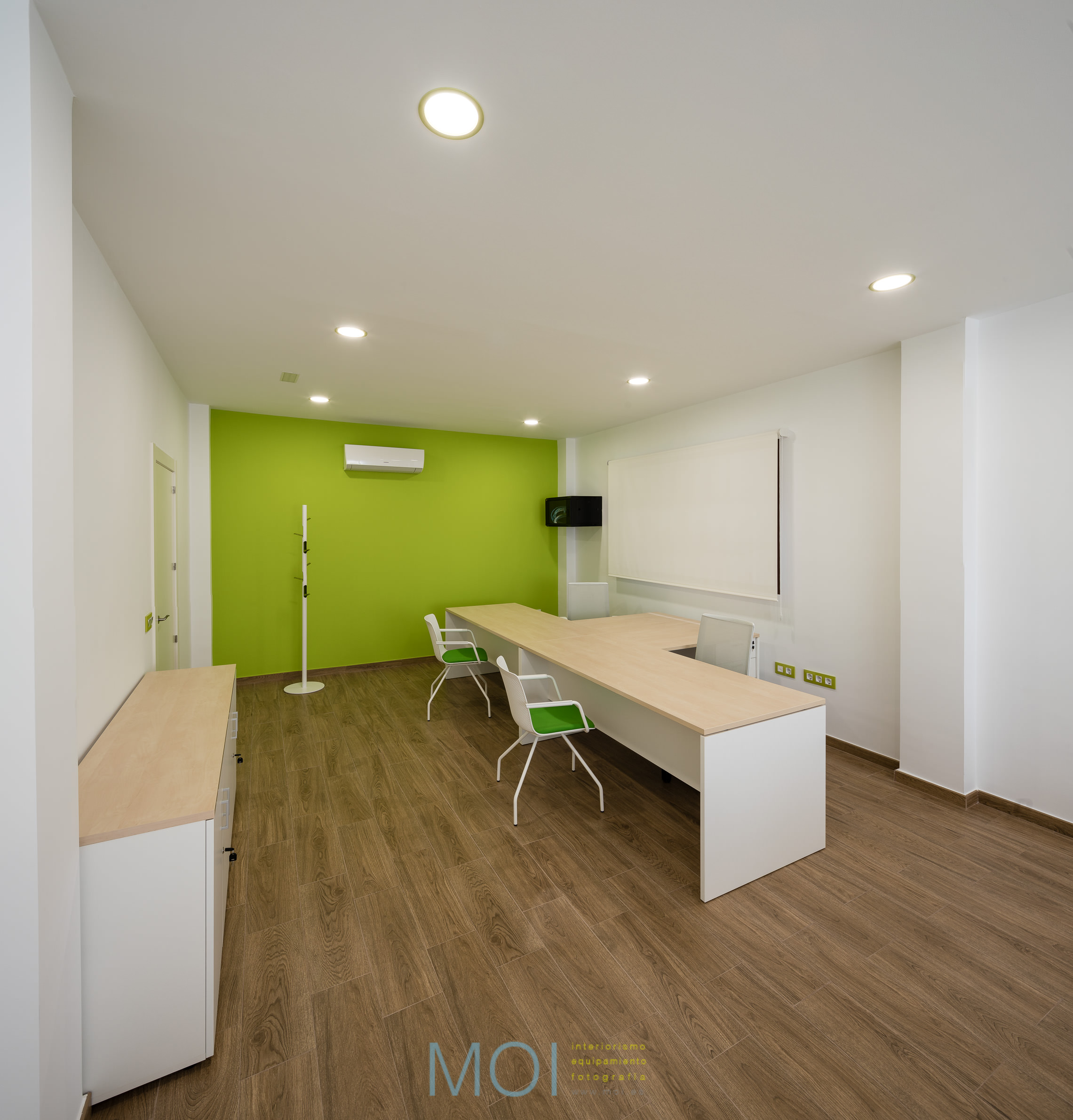 El uso de la mampara de vidrio, el techo acústico, las cortinas enrollables y la elección del propio mobiliario da una imagen moderna y ayuda a ampliar visualmente el espacio.