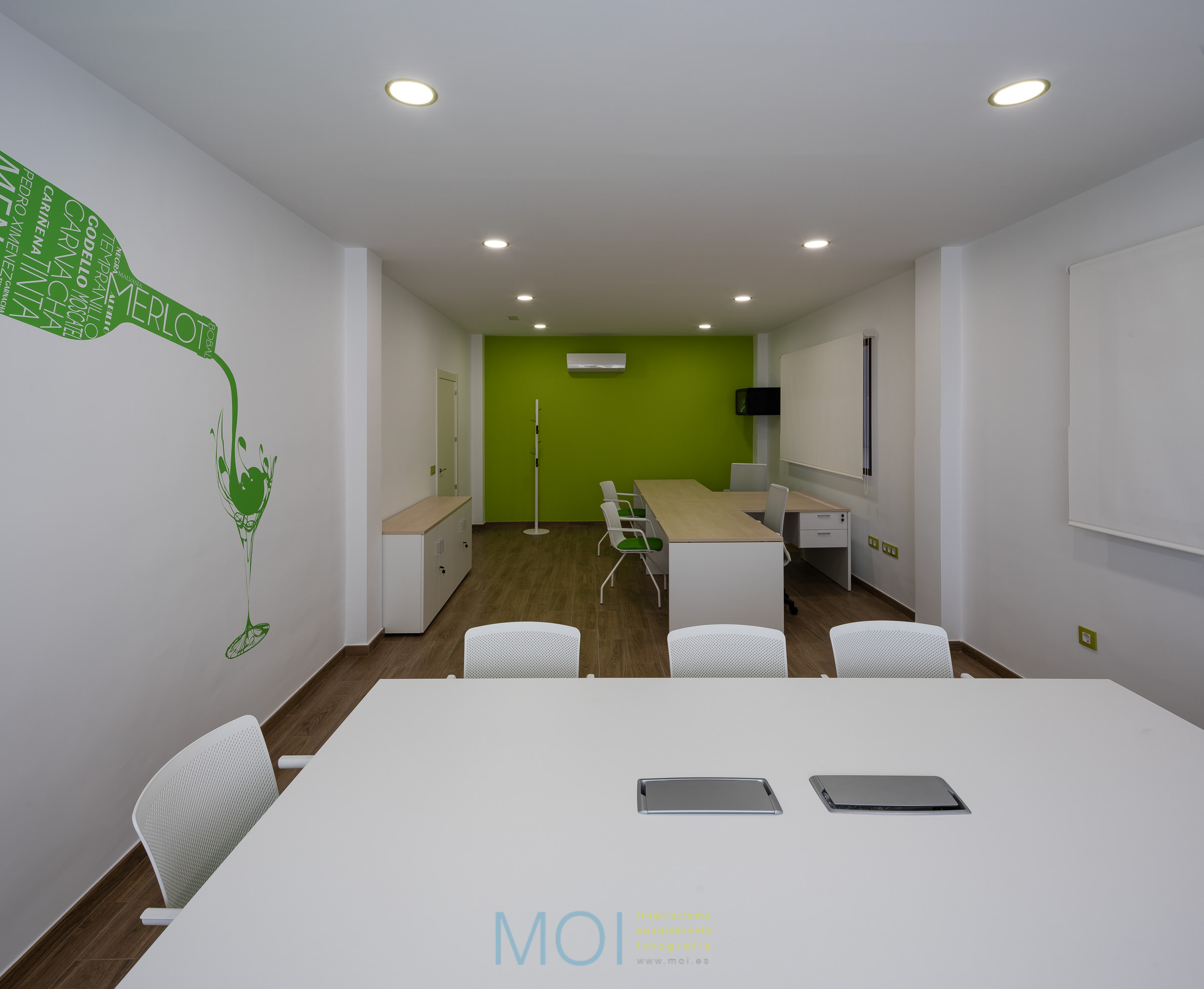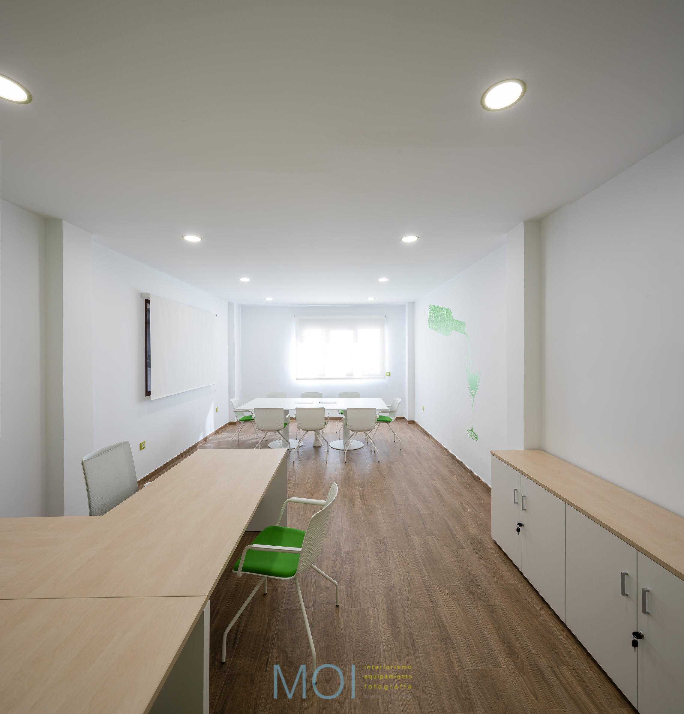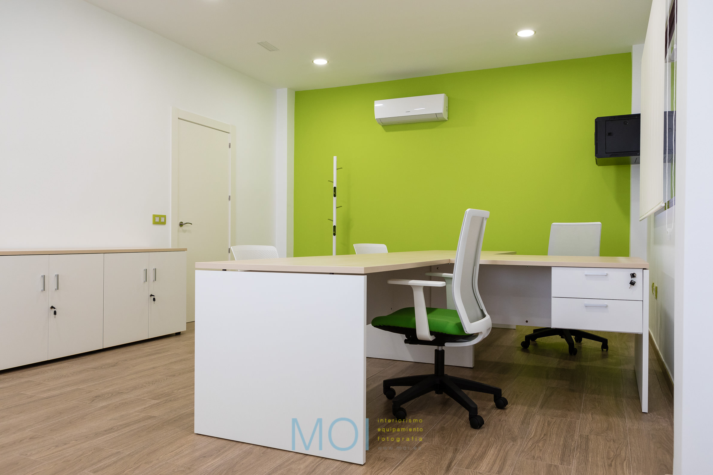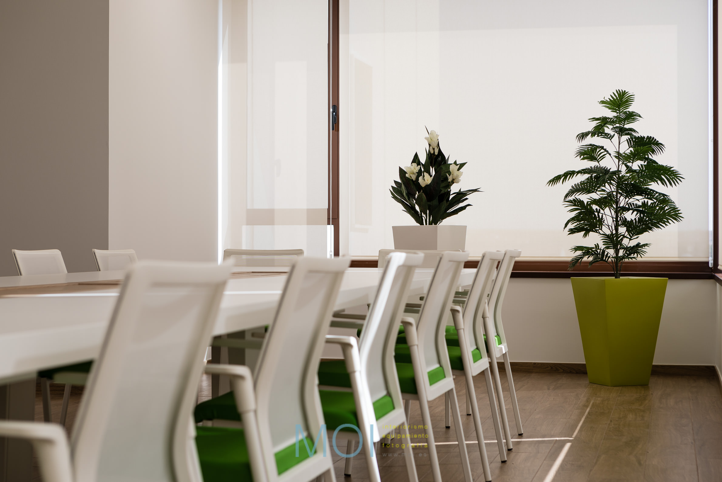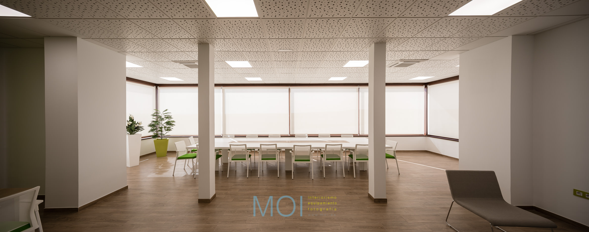 El uso de la mampara de vidrio, el techo acústico, las cortinas enrollables y la elección del propio mobiliario da una imagen moderna y ayuda a ampliar visualmente el espacio.