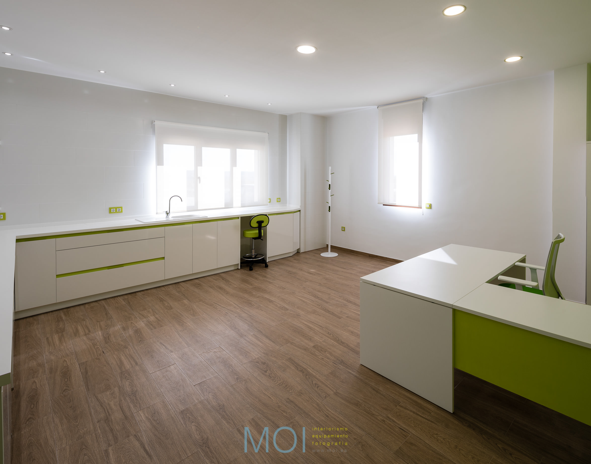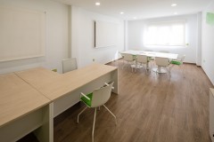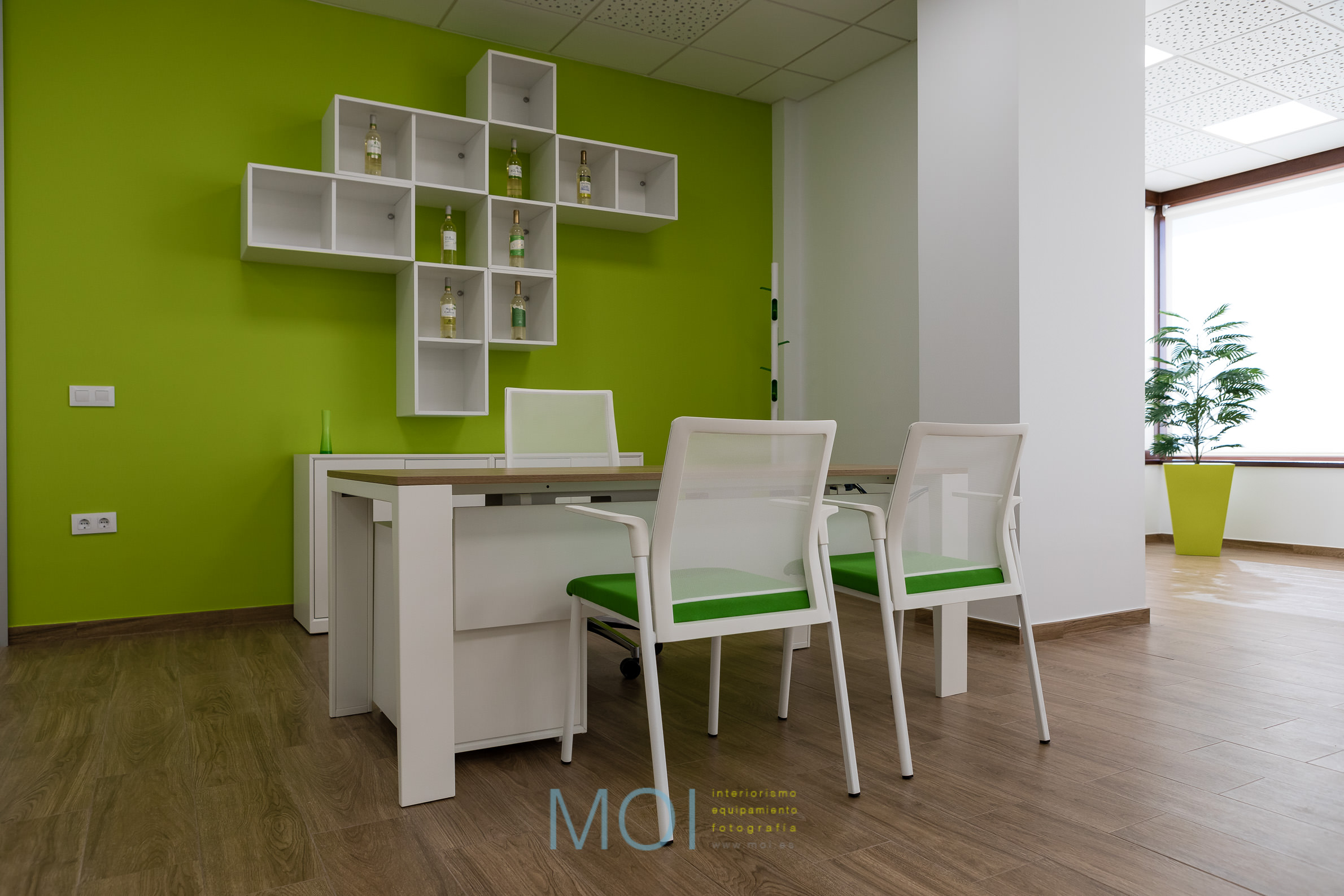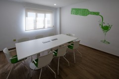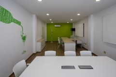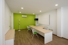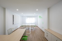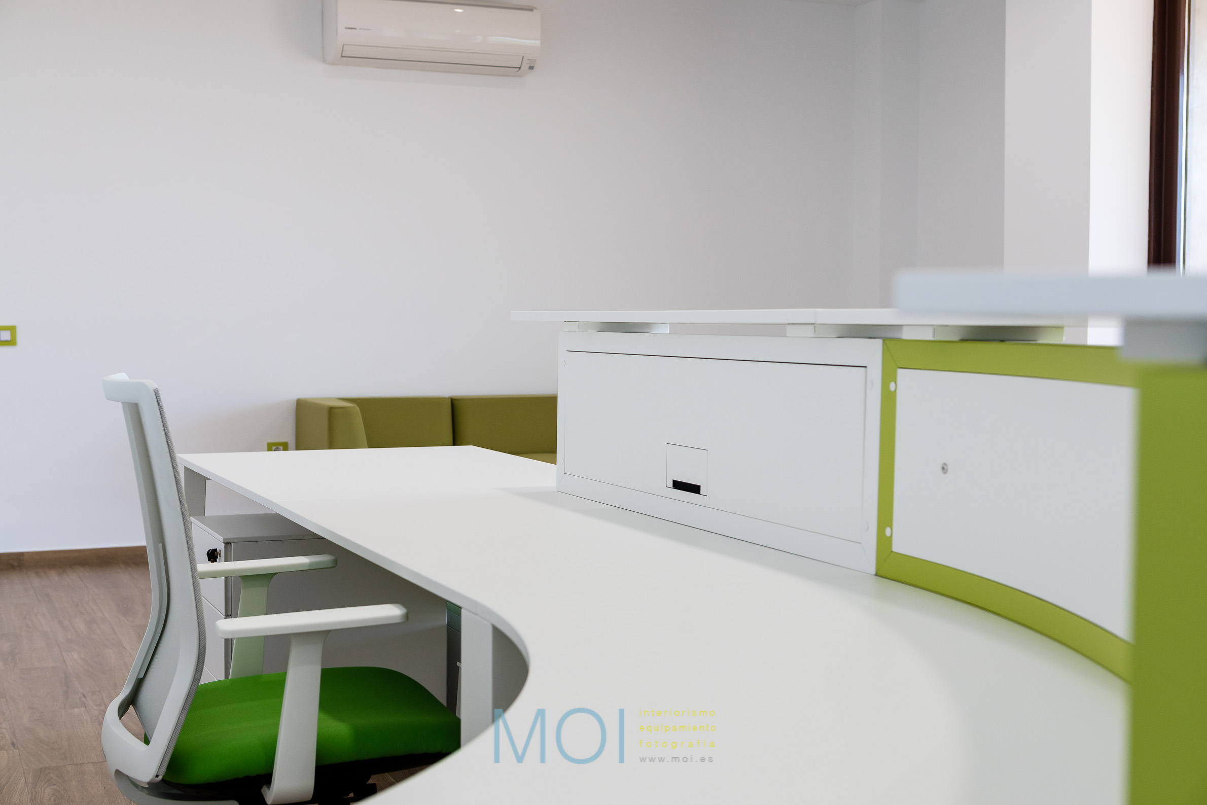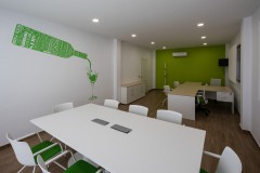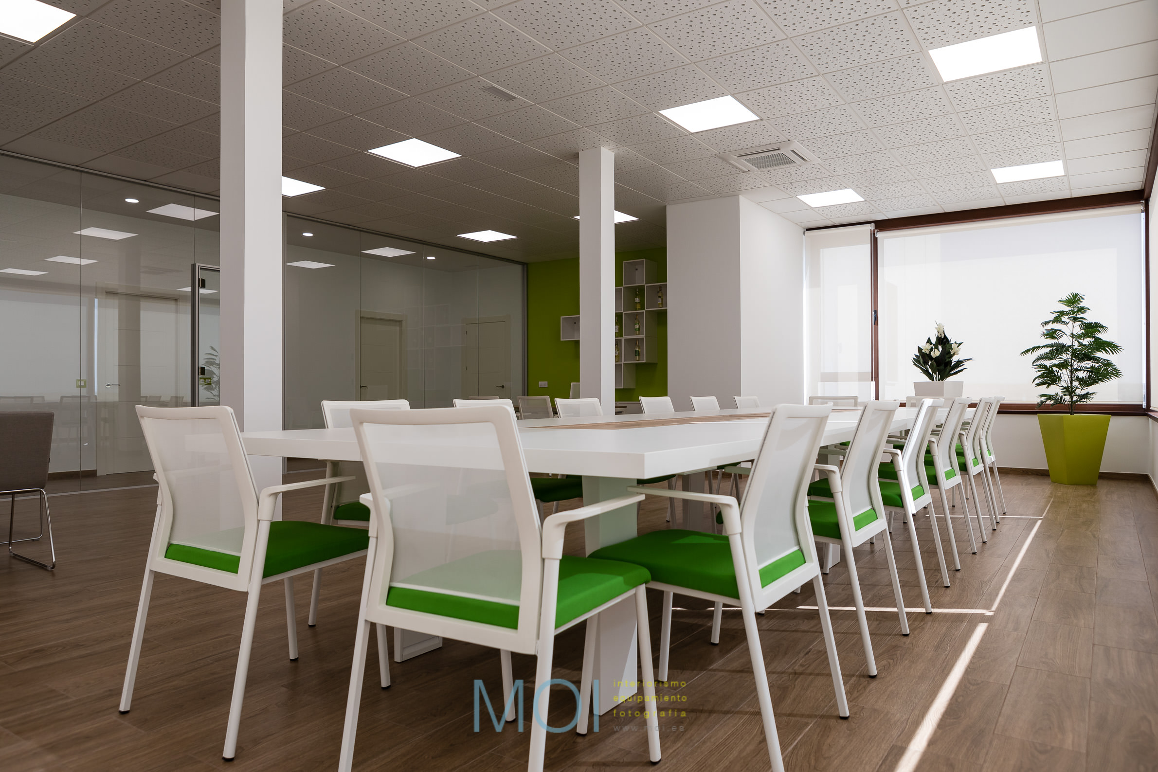 El uso de la mampara de vidrio, el techo acústico, las cortinas enrollables y la elección del propio mobiliario da una imagen moderna y ayuda a ampliar visualmente el espacio.