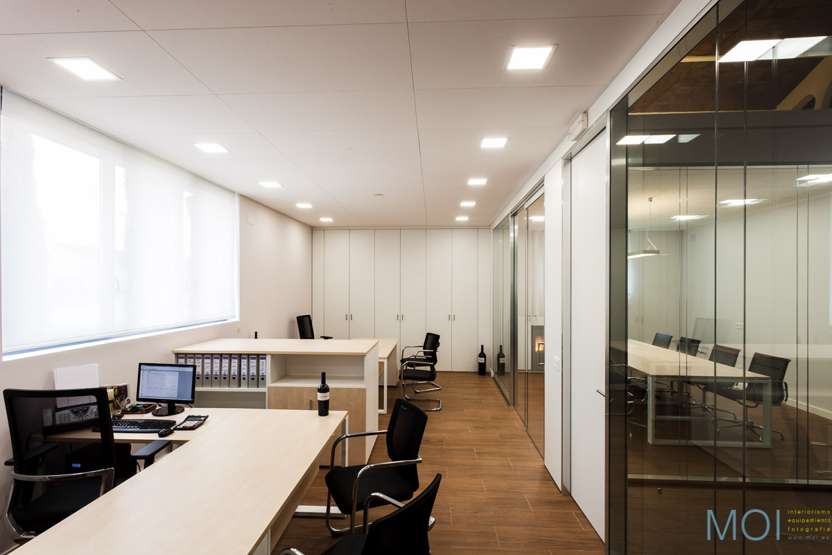 Bodegas Montebaco en plena Ribera del Duero. Situadas entre Valbuena de Duero y Pesquera en estas bodegas se realiza un vino magnífico. Ahora, además, disfrutan de unas nuevas oficinas para las que han contado con MOI a la hora de equiparlas. En MOI hemos suministrado tanto mampara y falso techo acústico como iluminación y un mobiliario para bodegas que destaca por su sencillez, elegancia y funcionalidad.