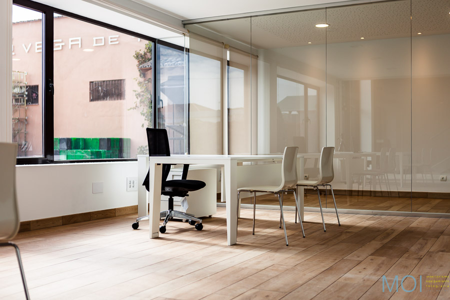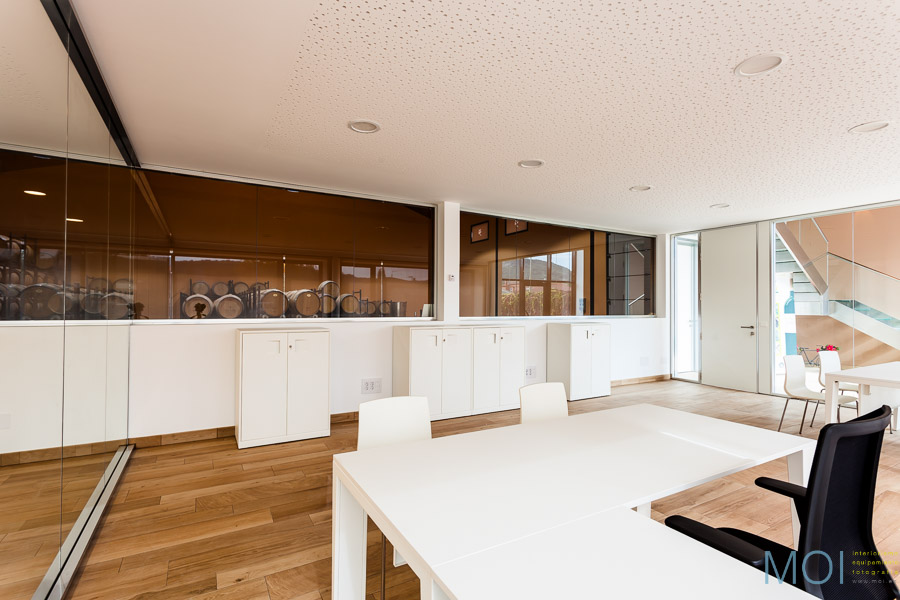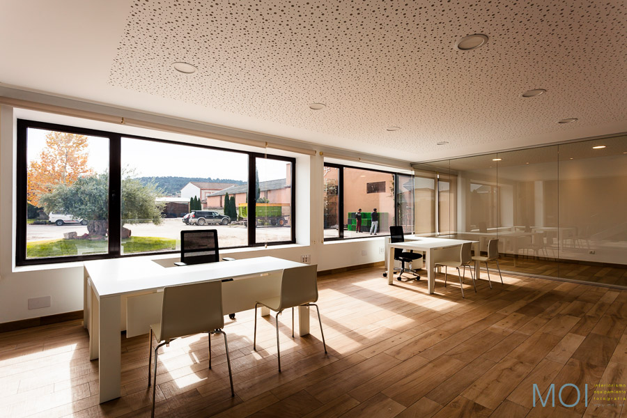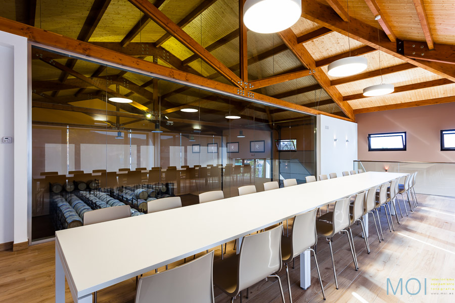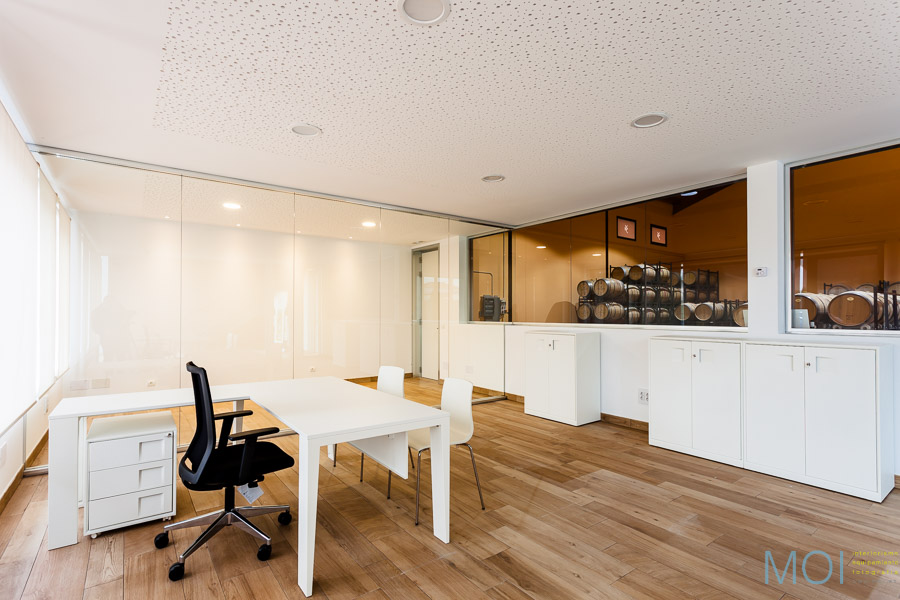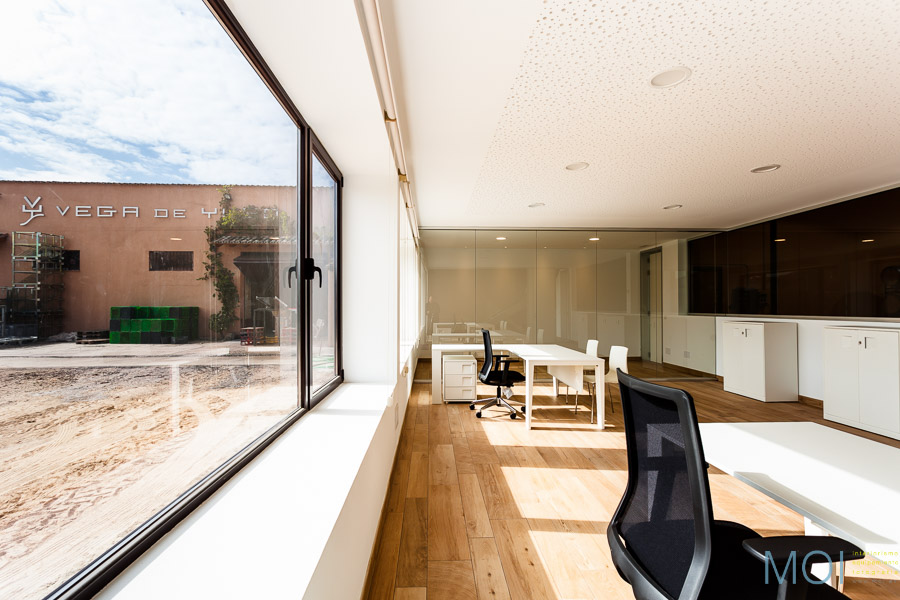 En una primera fase, MOI realizó las labores de adecuación, aislamiento y compartimentación del módulo de oficinas y sala de catas de las nuevas instalaciones de Bodegas Vega de Yuso en Quintanilla de Onésimo.