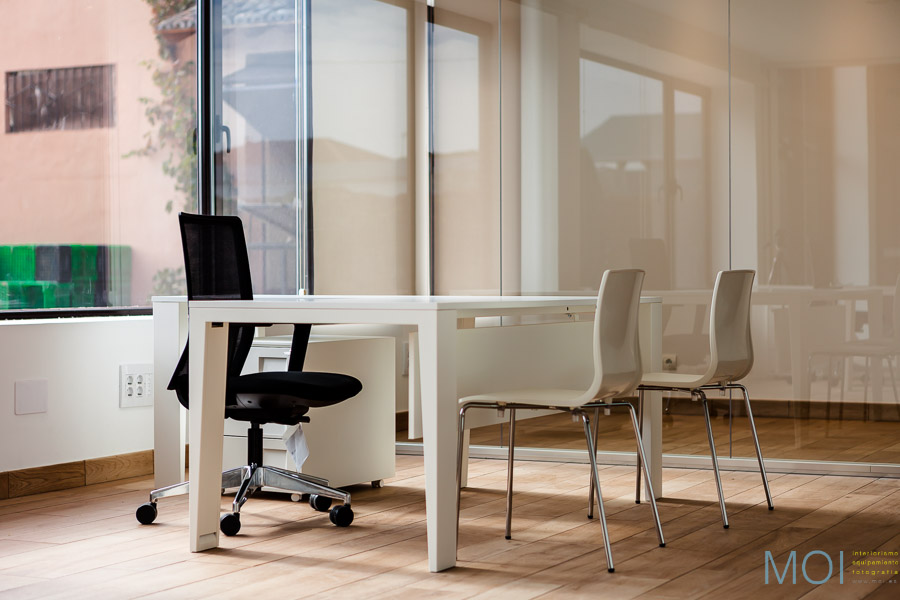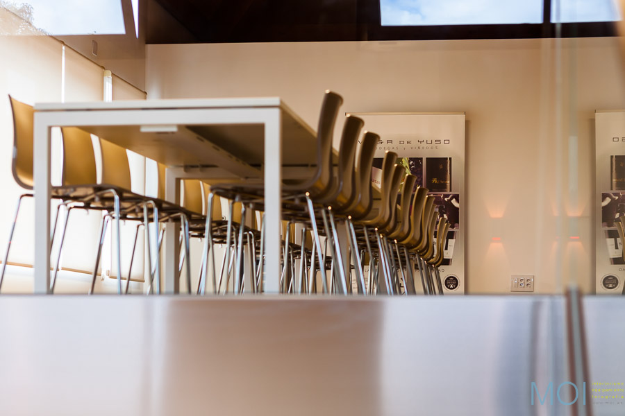 Posteriormente se procedió al equipamiento de las mismas empleando para ello productos funcionales y de calidad buscando crear espacios agradables y relajados, tanto en las oficinas como en la sala de catas desde la que se puede ver la sala de barricas.