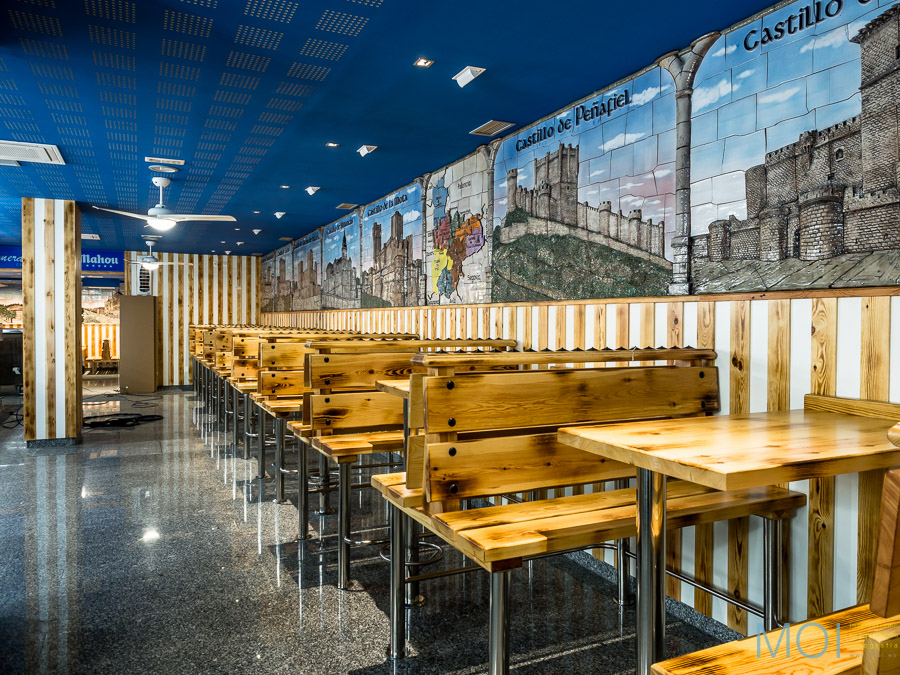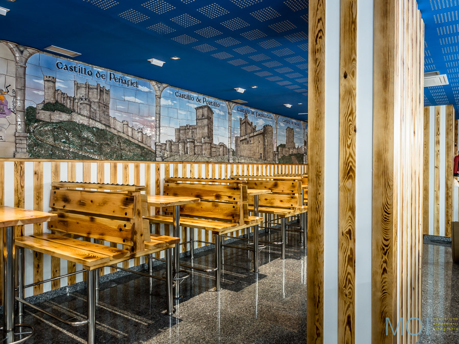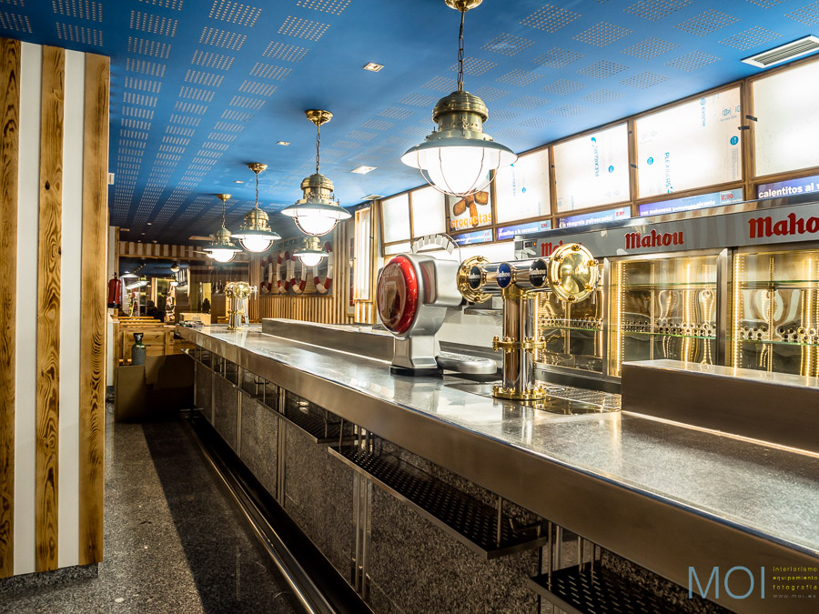 En una de sus primeras actuaciones, MOI colaboró en el equipamiento de la Nueva Mejillonera de Valladolid. Un local mítico que se ha trasladado de ubicación para ofrcer más espacio y una mejor atención al cliente pero buscando mantener exactamente la estética del local original.