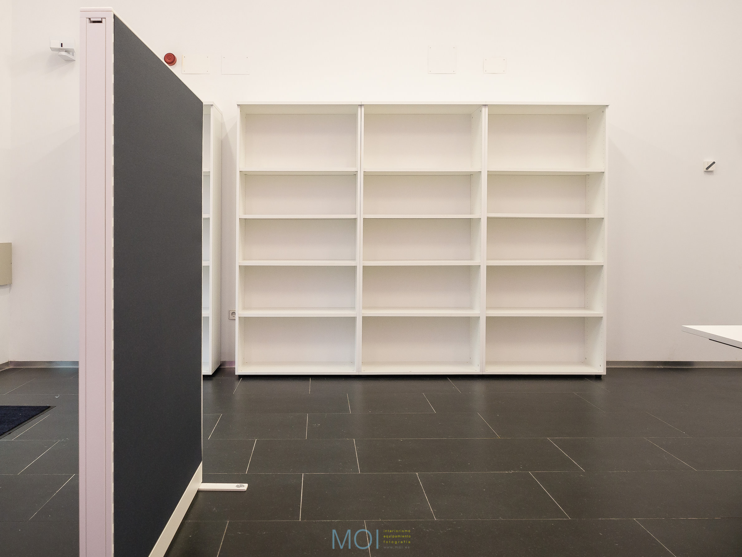 La intervención de MOI ha consistido en la instalación de mobiliario de oficina, sillería operativa y de colectividades, mesas de conferencia, complementos, percheros, lámparas, biombos fonoabsorbentes y sistemas de almacenamiento.
