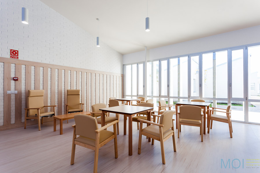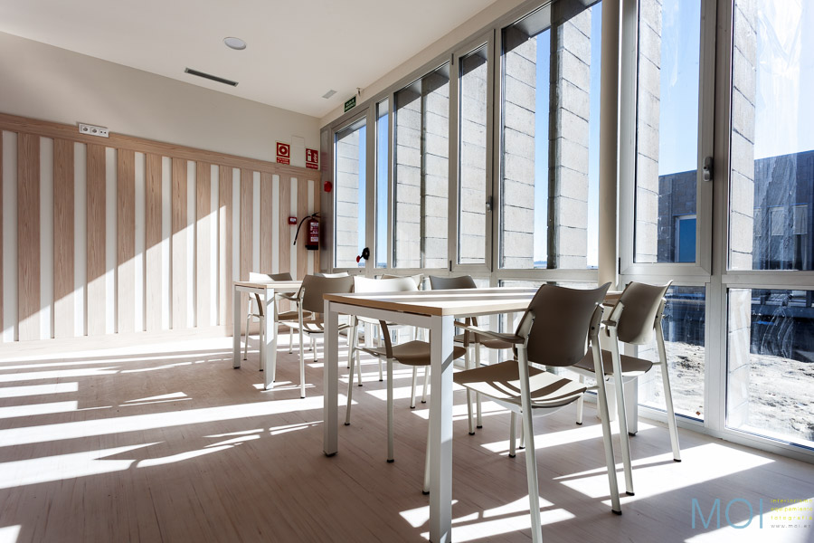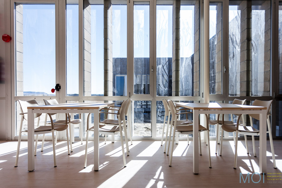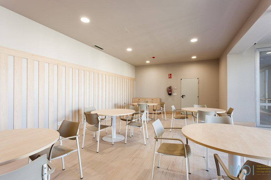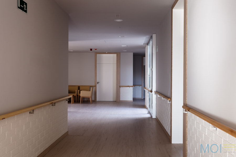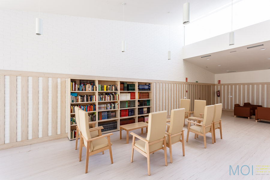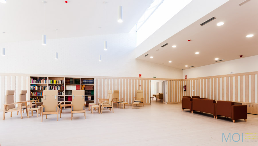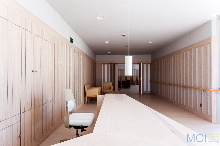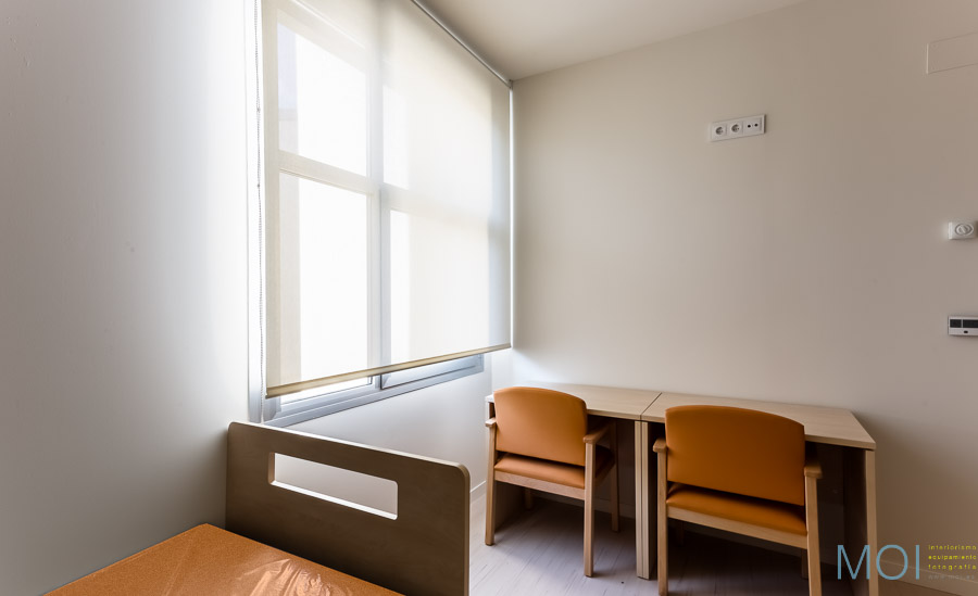 MOI ha suministrado tanto el mobiliario de las habitaciones, comedor, gimnasio, exterior y zonas comunes como el de geriatría y técnico. También los complementos de baño, sistemas de oscurecimiento e iluminación.