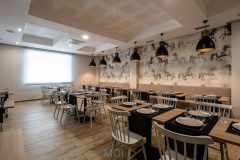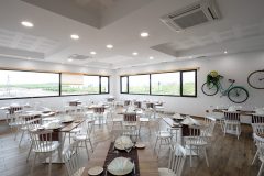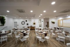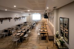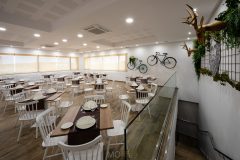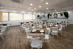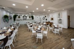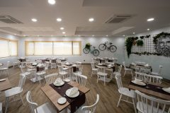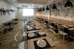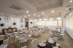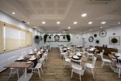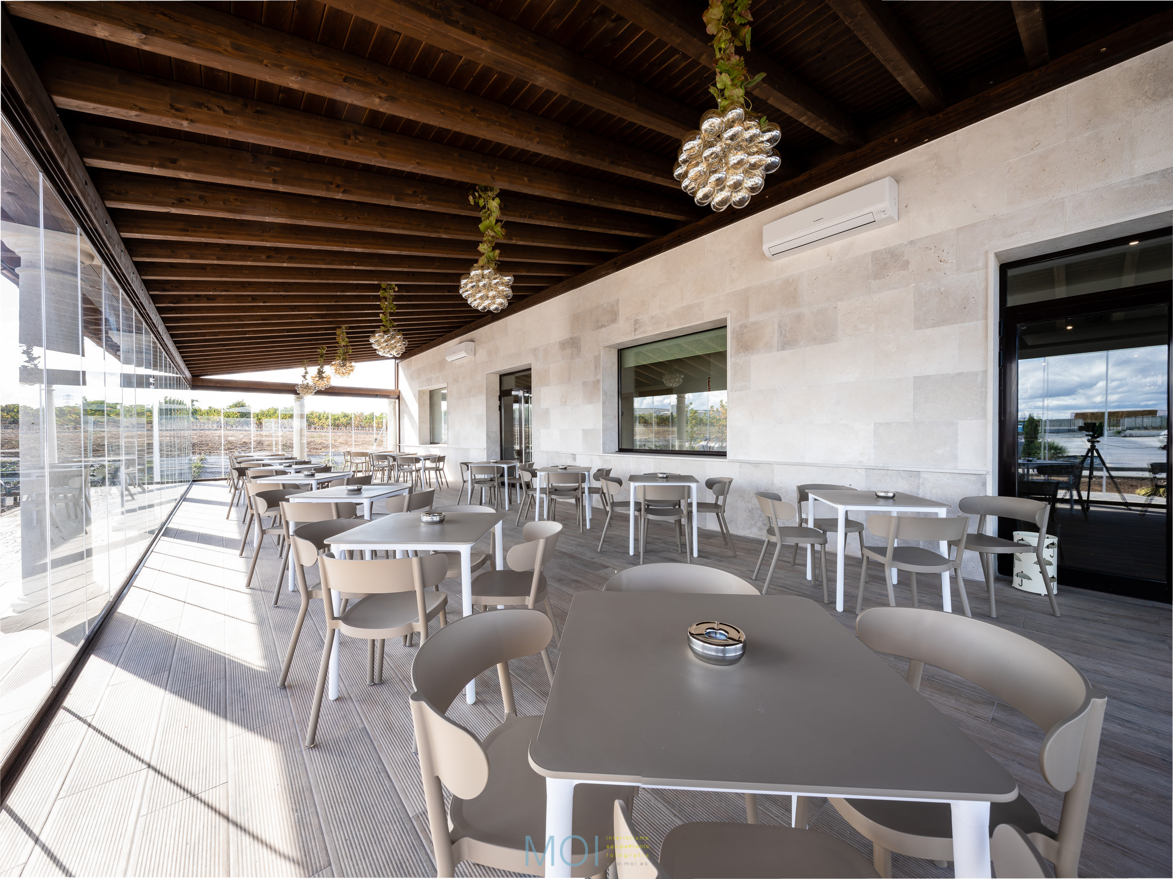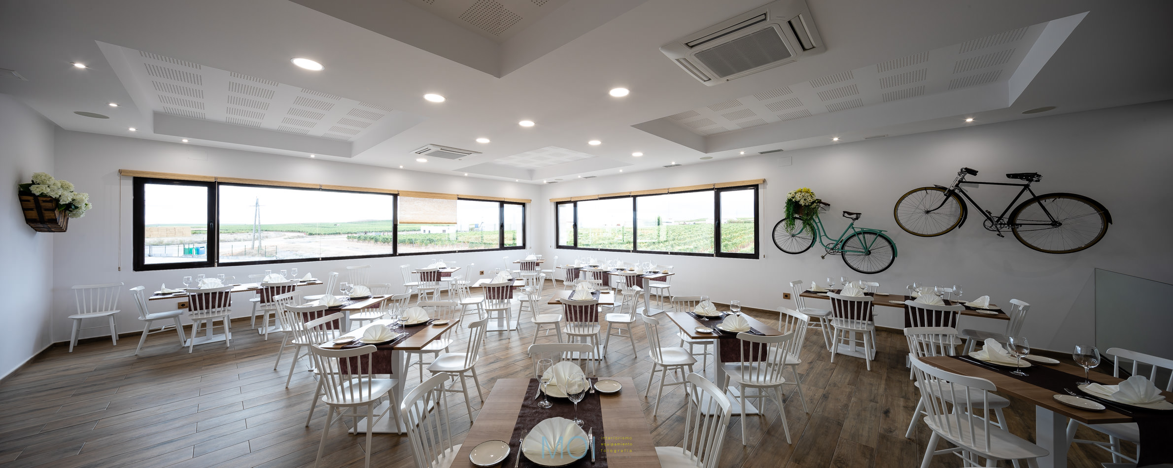 Se trata de una instalación rodeada de los típicos viñedos de la zona que cuenta con cuatro ámbitos diferenciados: Zona de cafetería, zona de terraza y dos salones comedores de amplia capacidad.