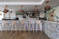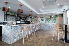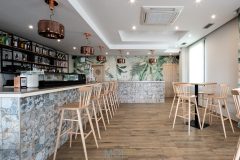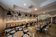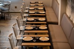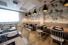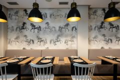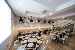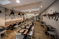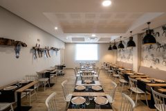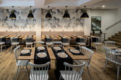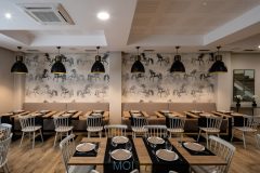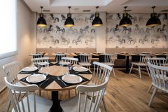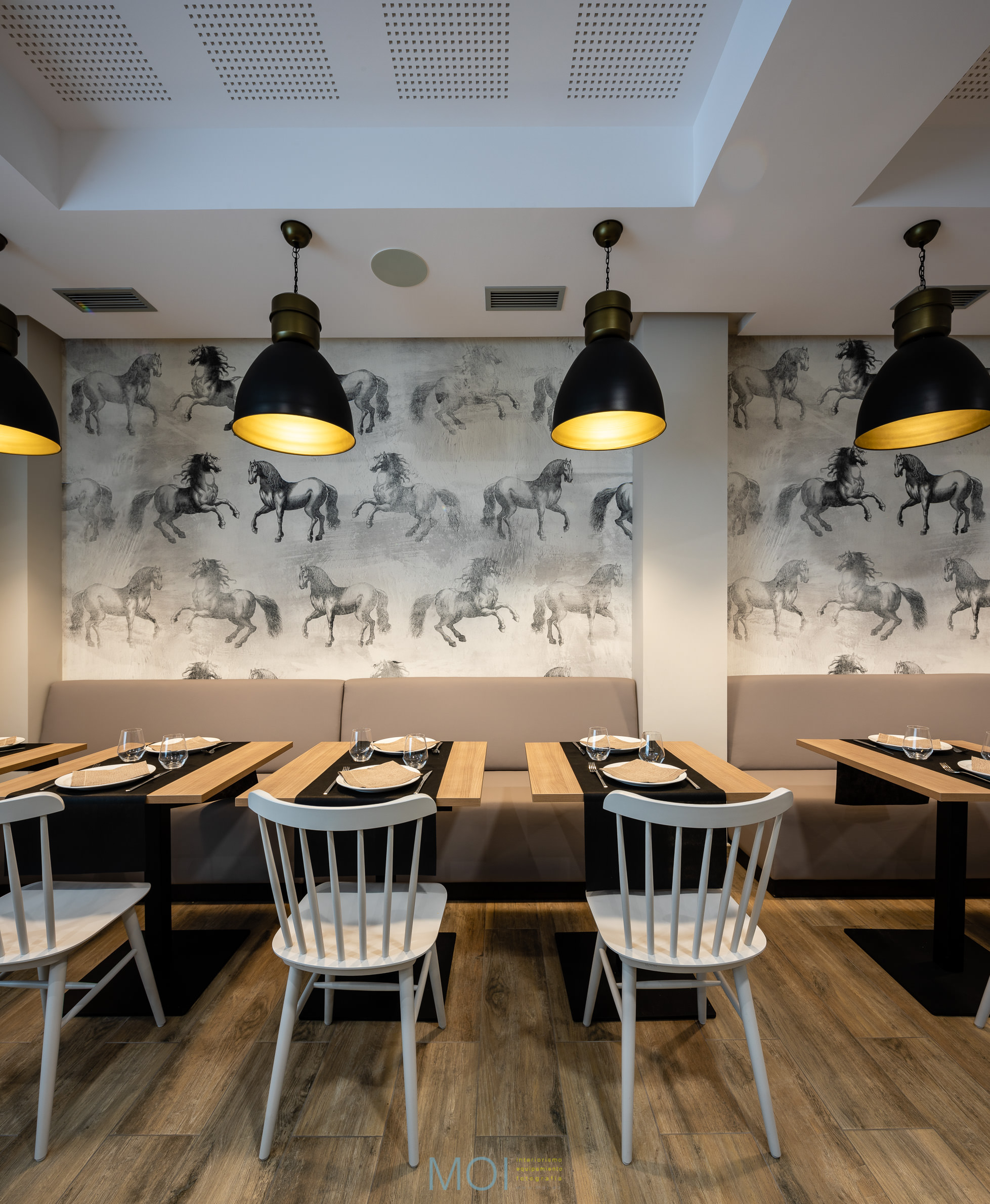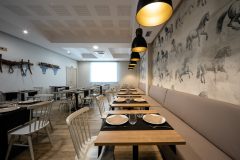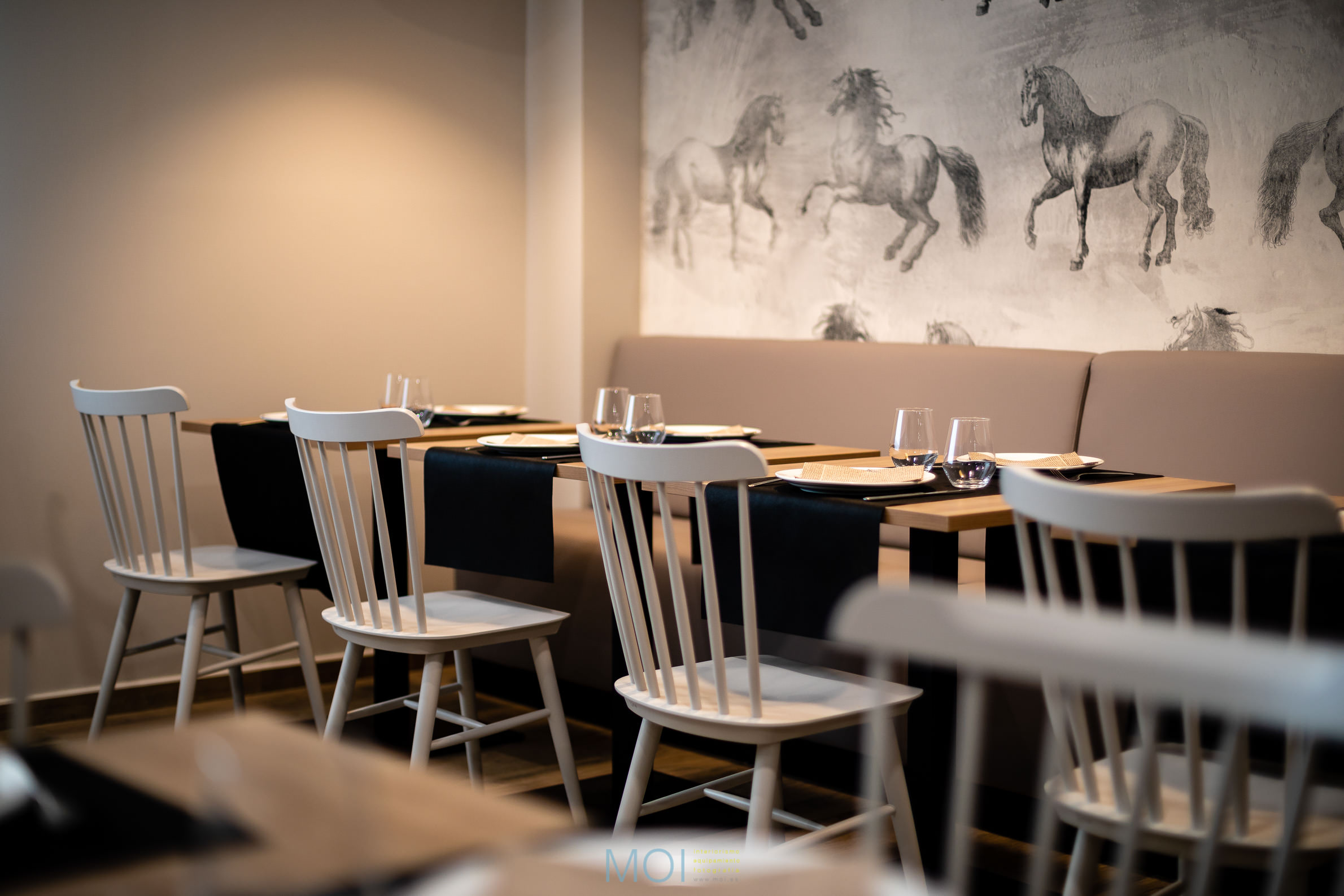 La elección del mobiliario, los colores, los acabados, los papeles pintados, las cortinas, el mobiliario a medida… Todo se relaciona para crear un conjunto homogéneo, acogedor y elegante donde disfrutar del placer de la buena gastronomía.