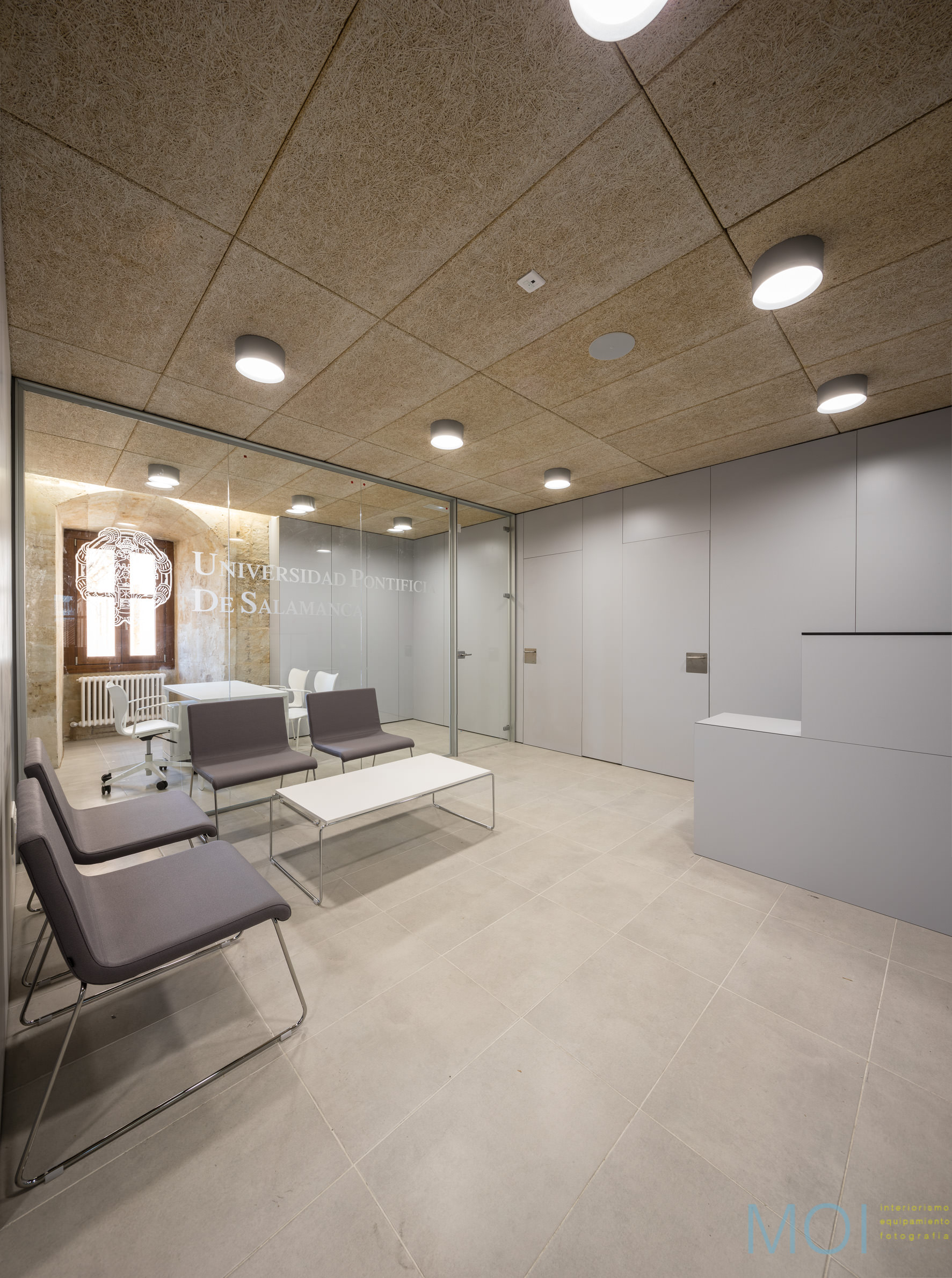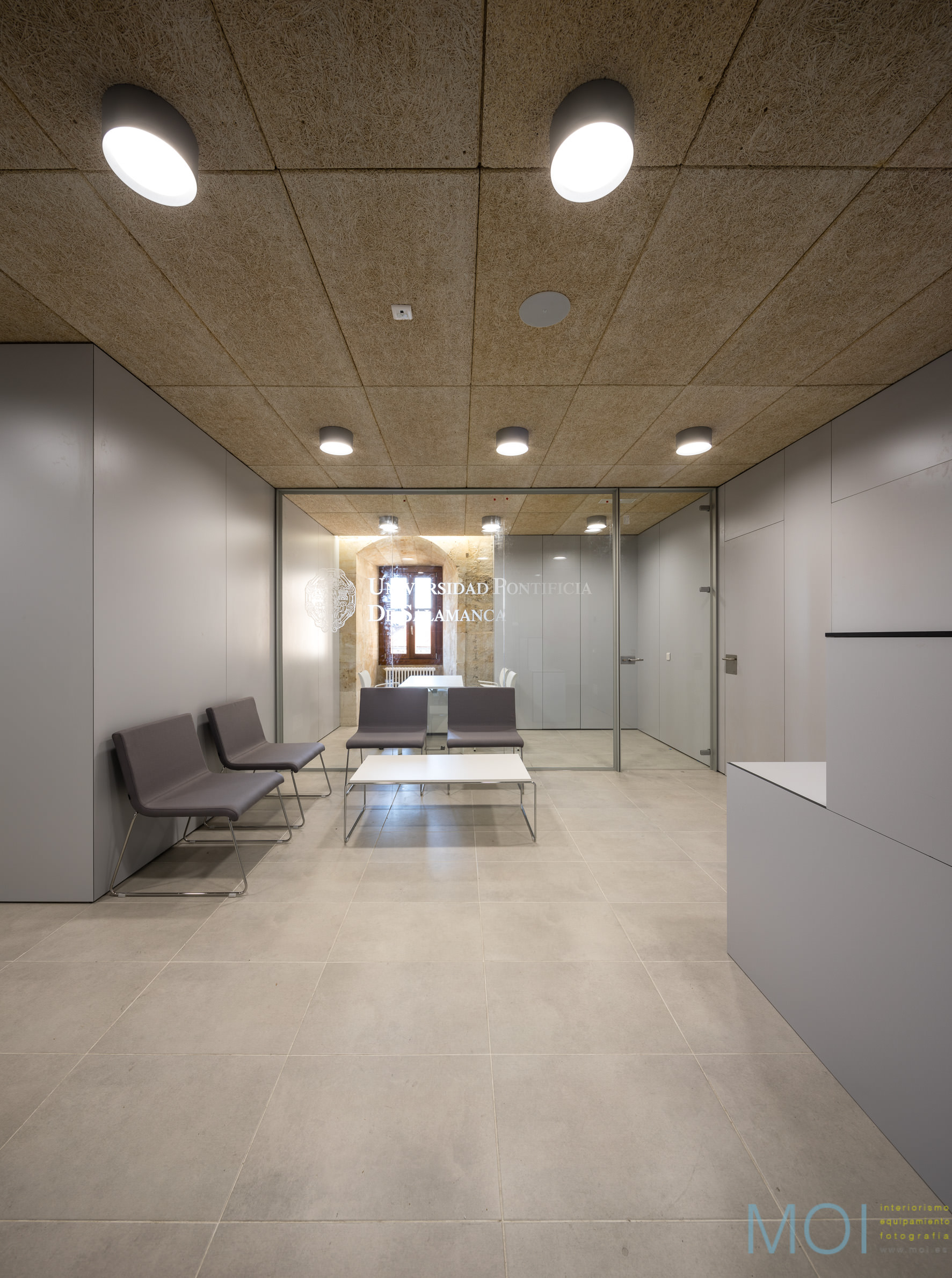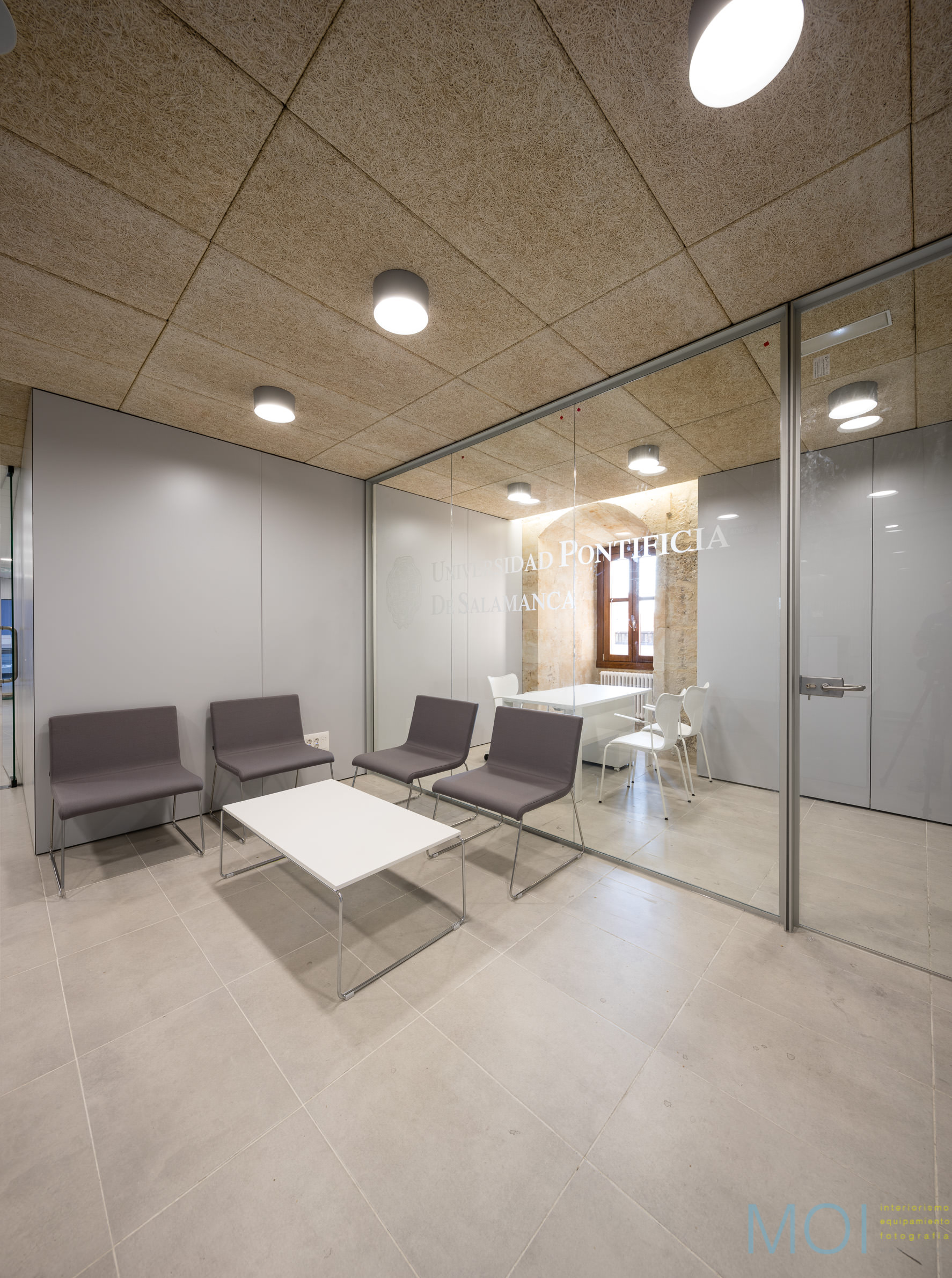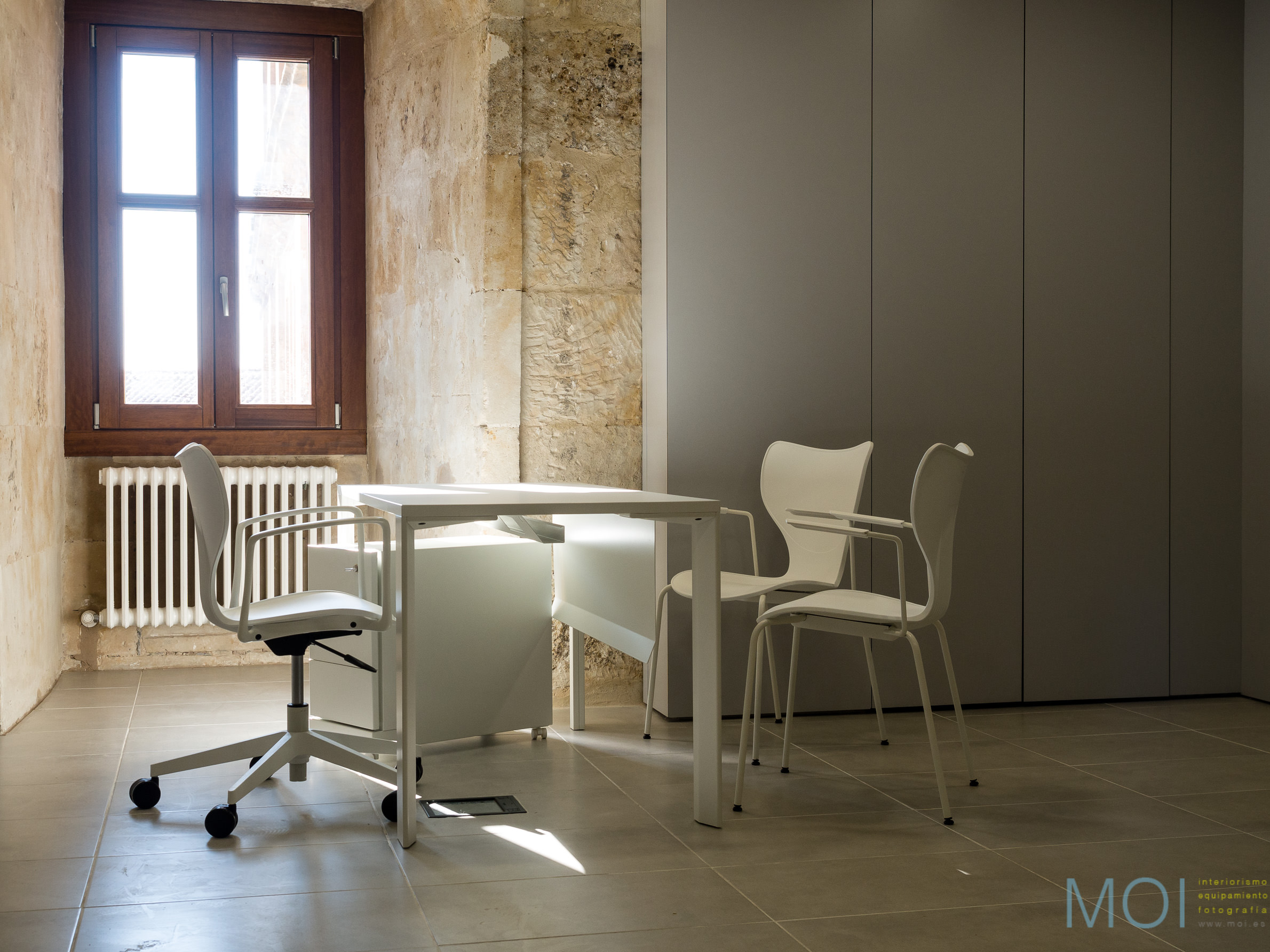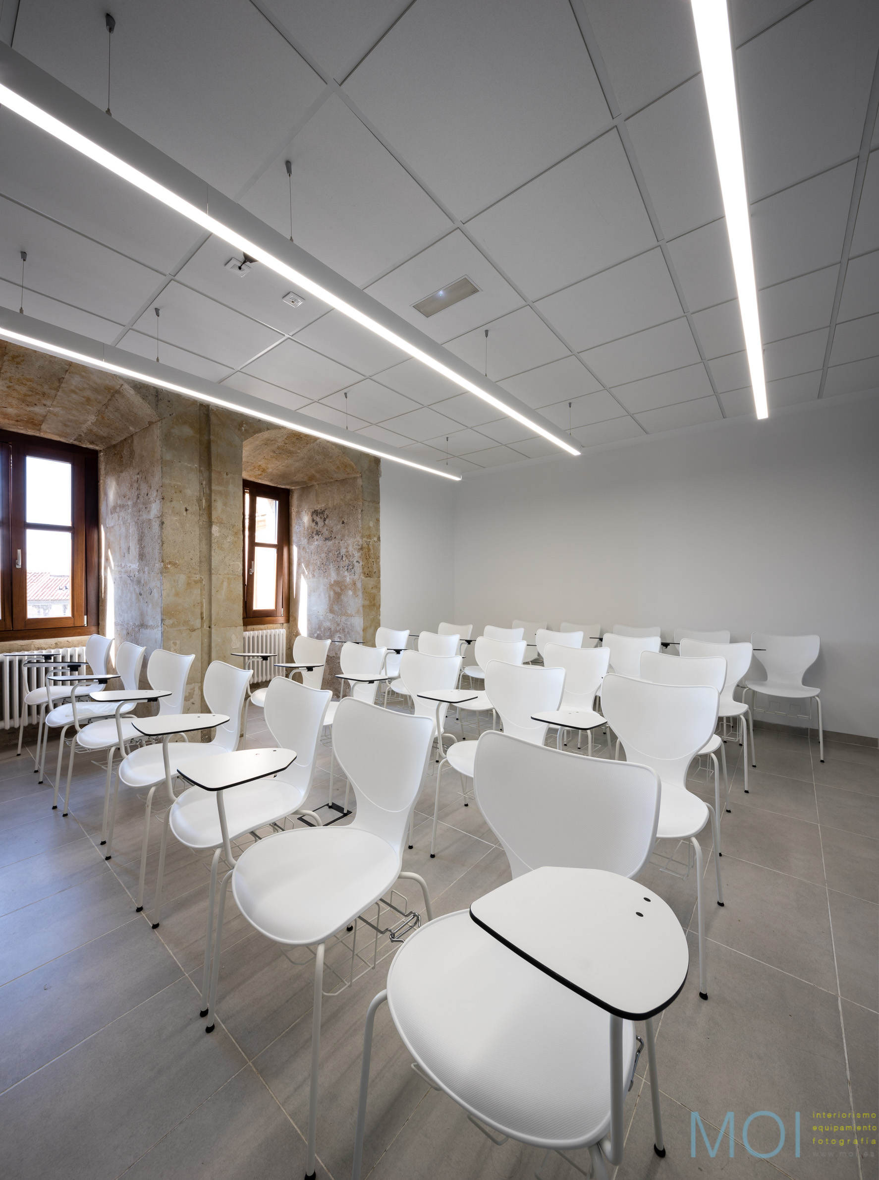 MOI ha equipado el Centro de Simulación Médica de la Universidad Pontificia de Salamanca. Se trata de una intervención del arquitecto Pablo Guillén Llanos en el histórico edificio de la UPSA. Un gran aprovechamiento espacial permite condensar todo el programa: recepción, despacho, aula debriefing, consulta, simulación de quirófano, sala de control, aseos y vestuarios. El mobiliario elegido destaca por su calidad y por una ligereza que permite que el espacio respire a pesar del intenso aprovechamiento.