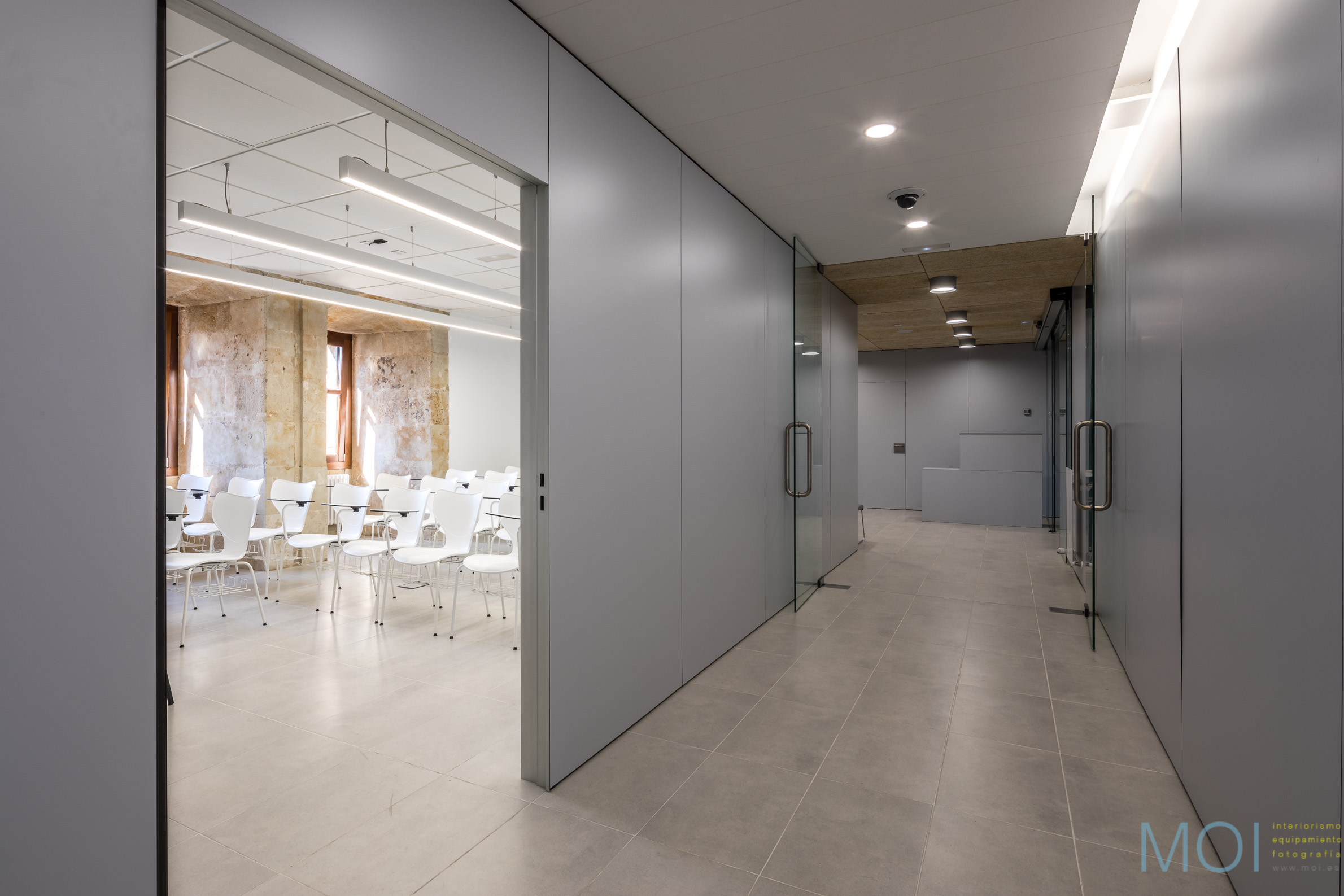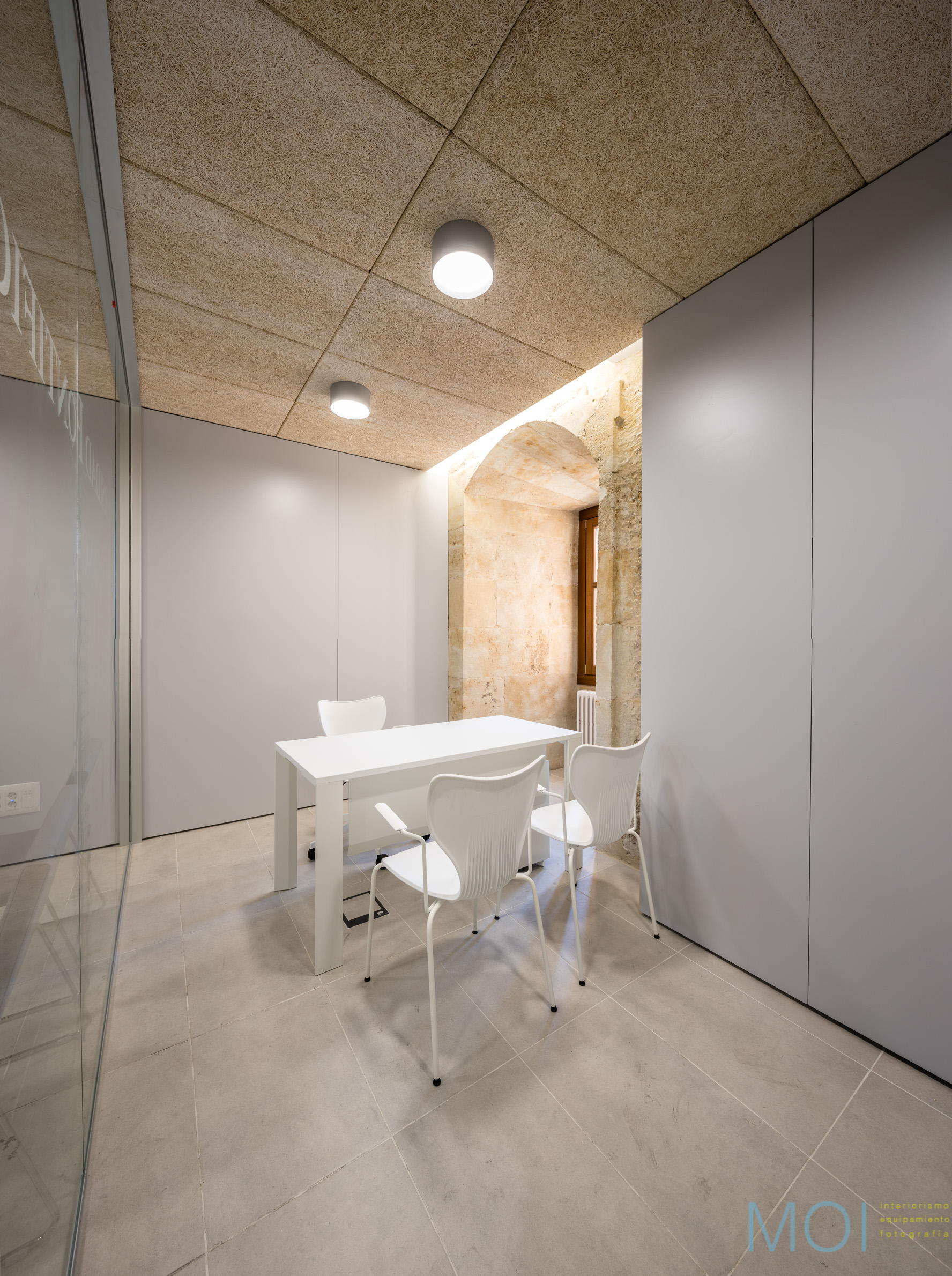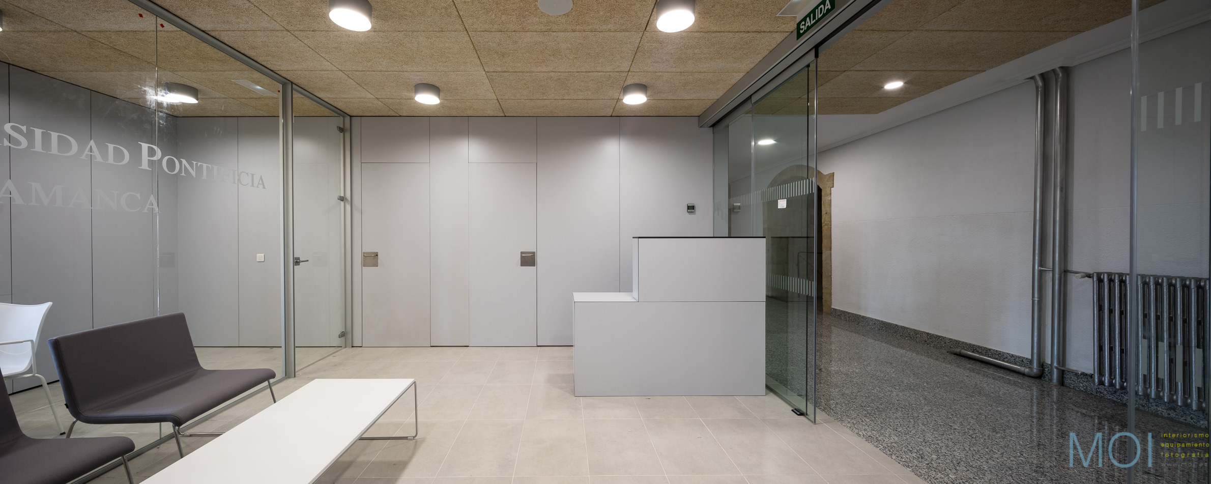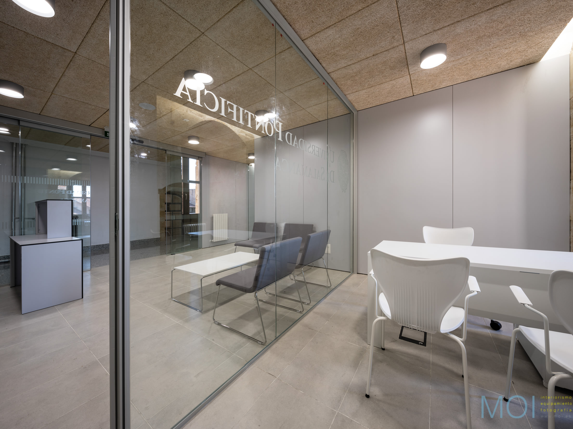 MOI ha equipado el Centro de Simulación Médica de la Universidad Pontificia de Salamanca. Se trata de una intervención del arquitecto Pablo Guillén Llanos en el histórico edificio de la UPSA. Un gran aprovechamiento espacial permite condensar todo el programa: recepción, despacho, aula debriefing, consulta, simulación de quirófano, sala de control, aseos y vestuarios. El mobiliario elegido destaca por su calidad y por una ligereza que permite que el espacio respire a pesar del intenso aprovechamiento.