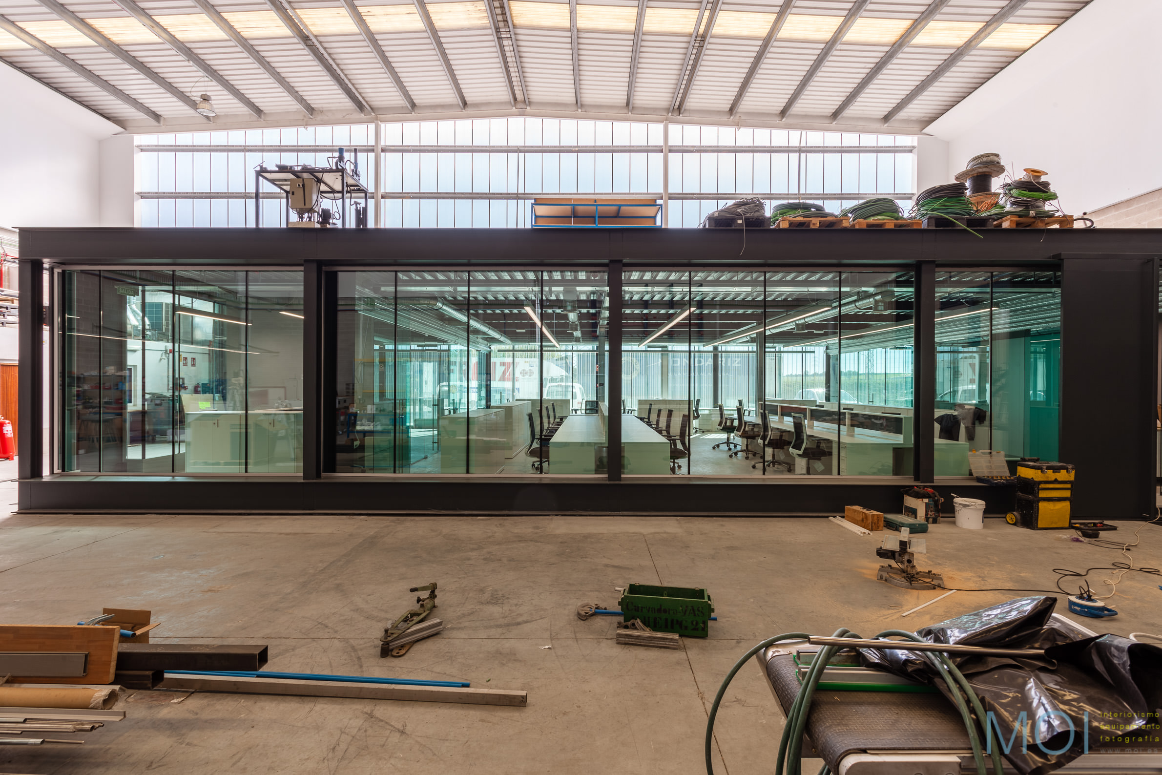 Se trata de un interesante proyecto de rehabilitación de una nave y oficinas preexistentes pero en muy mal estado.