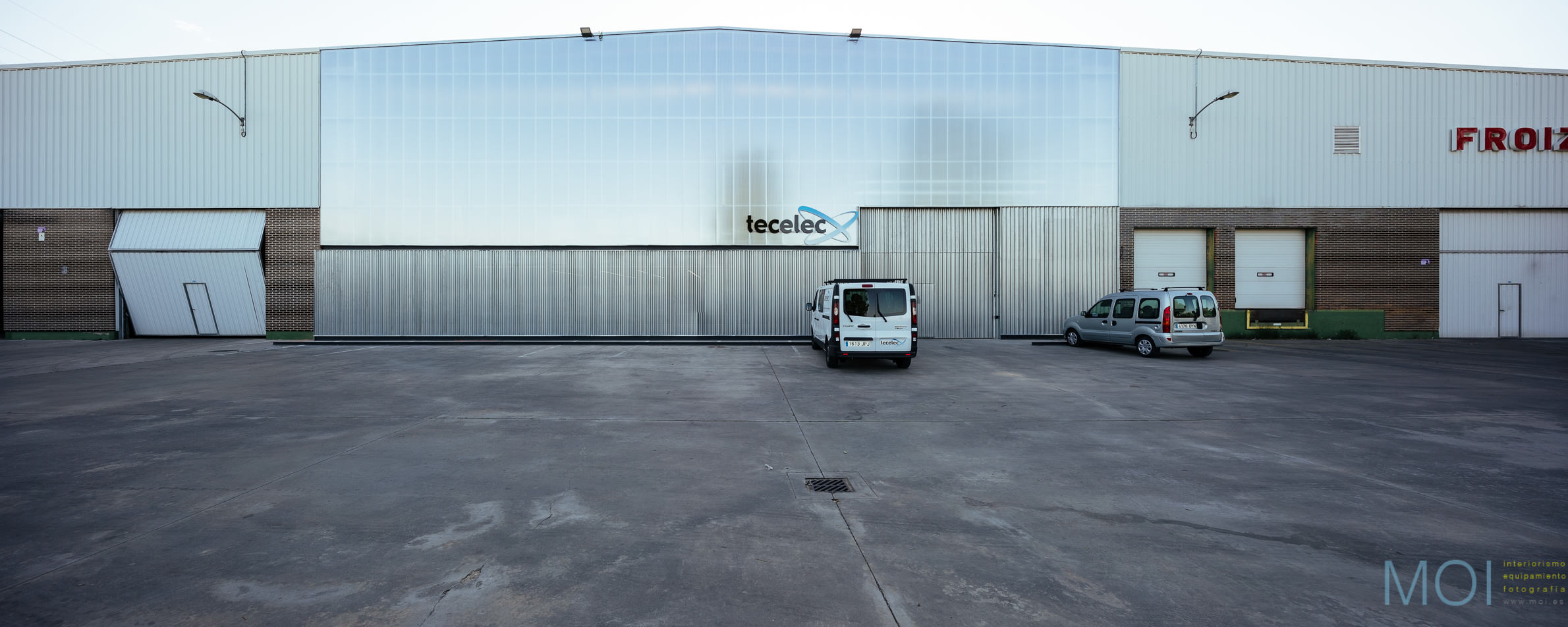 Al exterior, el plano de fachada de la nave requería su renovación debido al mal estado previo. Se optó por una inteligente solución de piel de policarbonato celular que permite una gran luminosidad en toda la nave y en las oficinas. Éstas, además, se protegen del exterior mediante una galería cerrada con chapa ondulada microperforada.