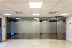 En MOI somos especialistas en división de espacios mediante mamparas. Esta obra es una muestra de la recuperación de un espacio residual en un edificio por parte del arquitecto Eduardo Dorado consiguiendo su aprovechamiento al máximo con un resultado además muy agradable y funcional.