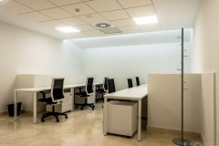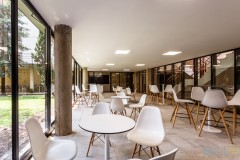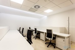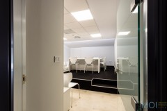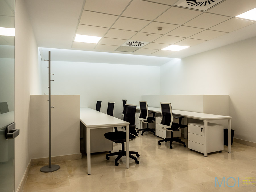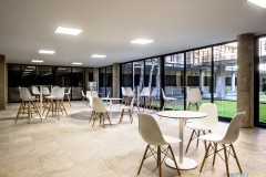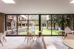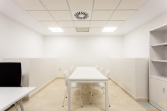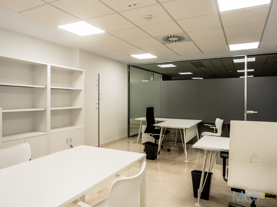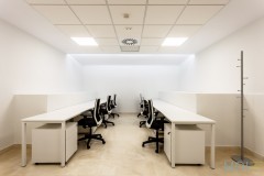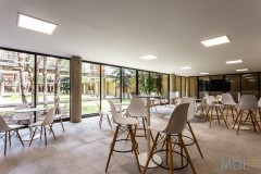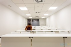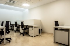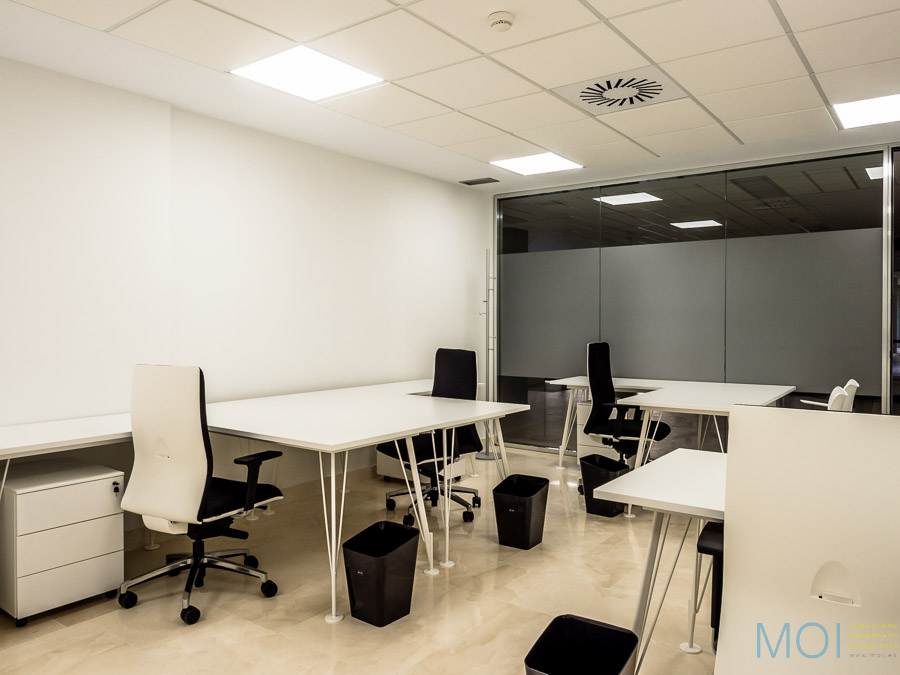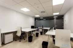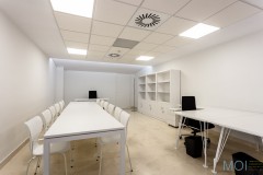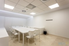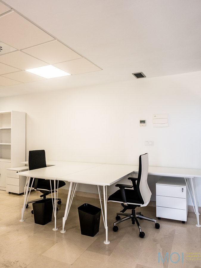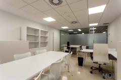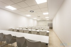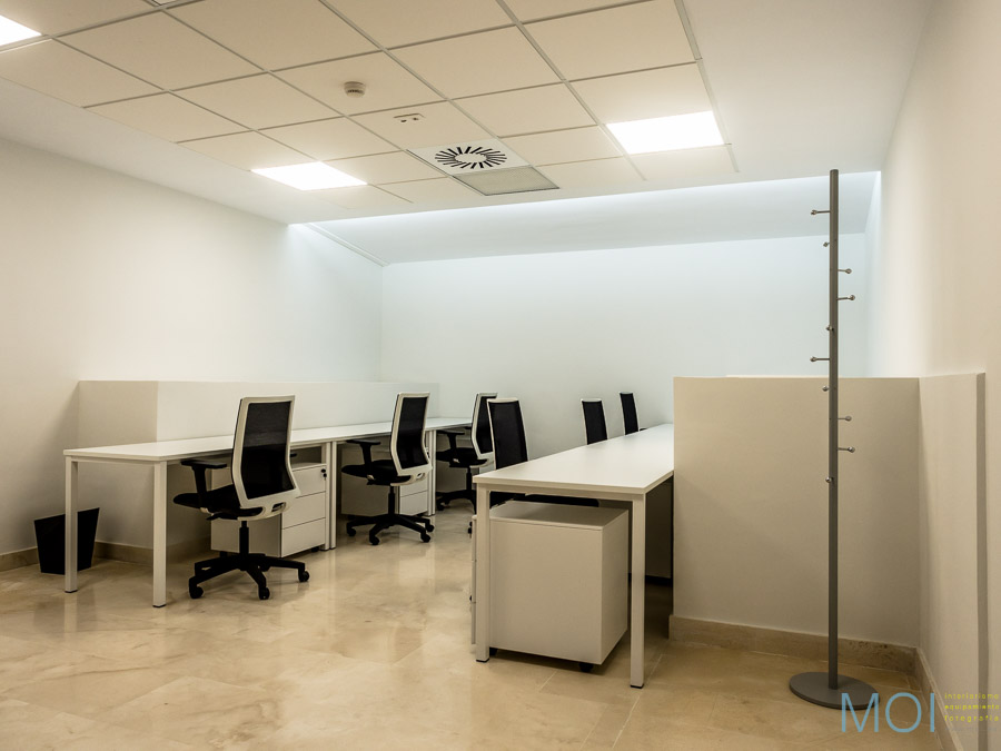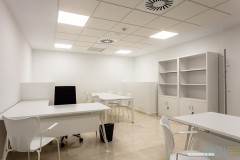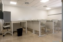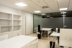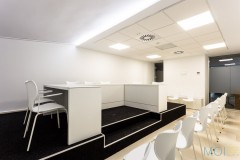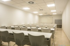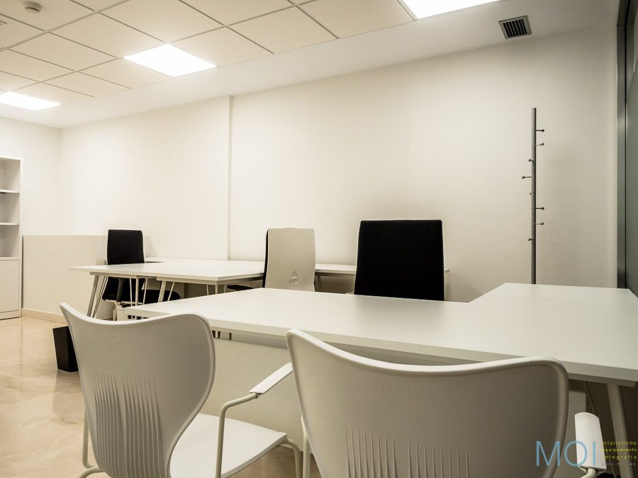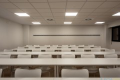 Amueblamiento de la nueva zona de Seminarios en la Facultad de Derecho de la Universidad de Salamanca. MOI fue la empresa encargada de suministrar e instalar las mamparas divisorias y las cabinas fenólicas en la fase de obra. Posteriormente también se adjudicó el amueblamiento de estos espacios. Se ha optado por un mobiliario altamente resistente al uso, funcional y que transmita una sensación de ligereza y luminosidad muy necesaria dadas las condicionantes de su ubicación. Un ejemplo de recuperación de unos espacios en principio residuales que gracias a una inteligente redistribución, acondicionamiento y aprovechamiento por parte de la Dirección Facultativa ofrece a la Facultad de Derecho una zona de expansión con nuevos usos sin necesidad de ampliar el edificio existente.